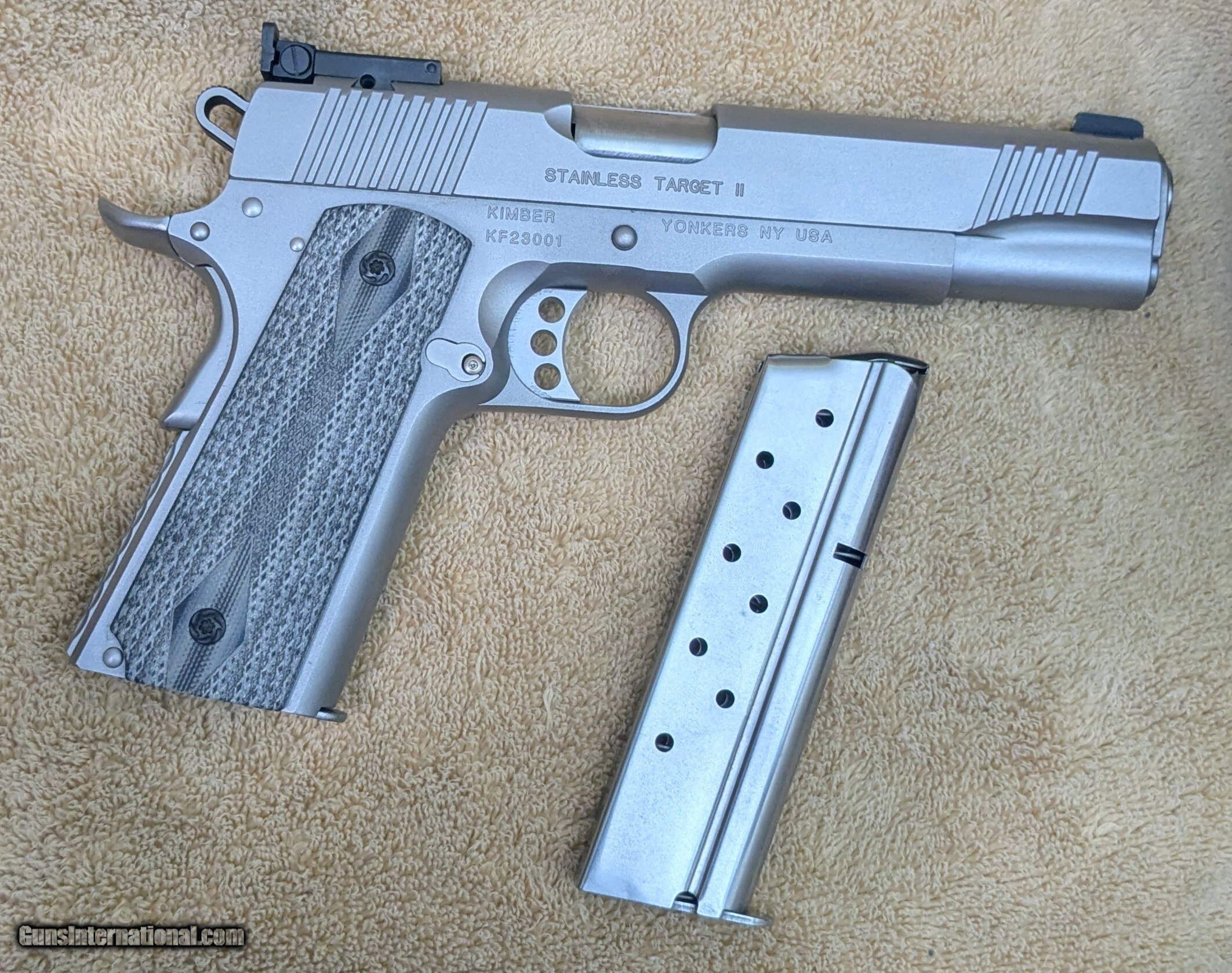 Description: Kimber Stainless Target II #KF23001. 10mm with Wilson Combat extended slide stop. 5 in. barrel, Kimber adjustable target sights. LNIB with locks, papers, extra clip. Price includes shipping to your FFL for legal transfer and CC fees! Handgun Caliber: 10mm Auto Manufacturer: Kimber Model: Stainless Target II Serial Number: KF23001 Barrel Length: 5 in Condition: LNIB Price: $995.00 Contact Seller |