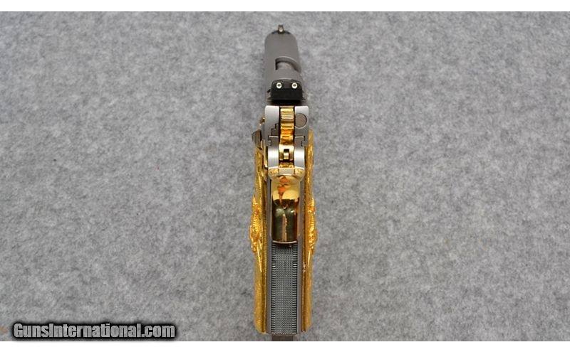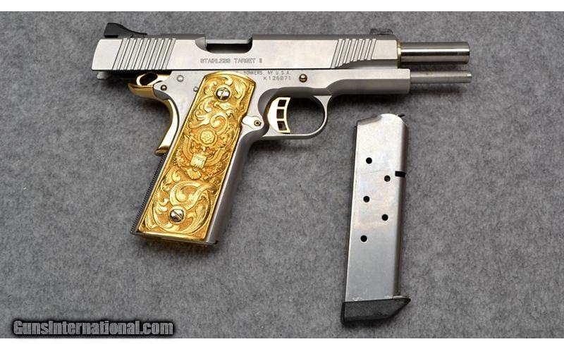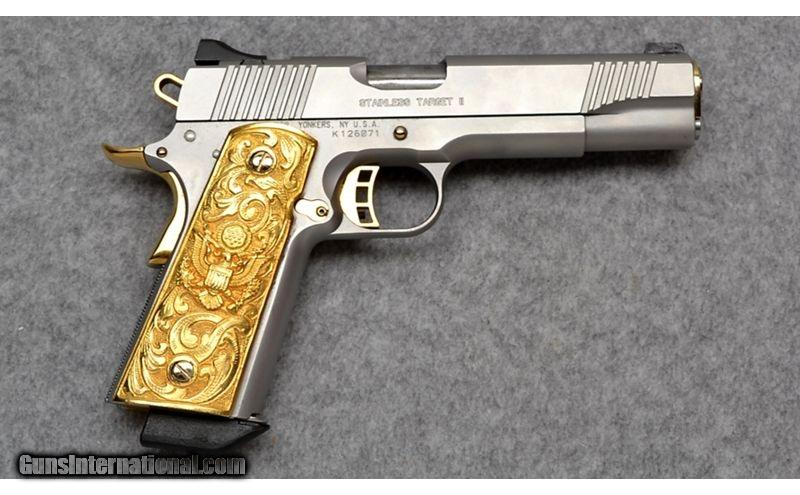 Description: .45 Auto SOLD Metal Condition: Excellent Bore Condition: Bright and Shiny with Strong Rifling Barrels: 5" Stainless Triggers: SA Fore End: Textured Gold Composite Grips Sights: Partridge Night Sight Front / Low Pro Night Sight Rear Item Location: Allen, TX |