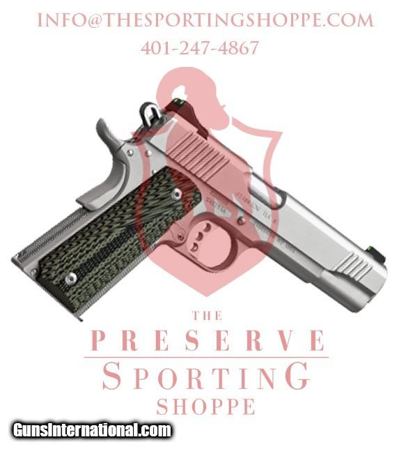 Description: The TLE (Tactical Law Enforcement) family of pistols is ideal for duty carry, tactical applications and personal protection. Specifications: Height (inches) 90° to barrel: 5.25 Weight (ounces) with empty magazine: 38 Length (inches): 8.7 Magazine capacity: 7 Recoil spring (pounds): 16.0 Full-length guide rod Frame: Material: Stainless steel Finish: Satin Silver Width (inches): 1.28 Front strap checkering Slide: Material: Stainless steel Finish: Satin Silver Flat top Barrel: Length (inches): 5 Material: Stainless steel, match grade Stainless steel match grade bushing Twist rate (left hand): 16 Sights: Fixed low-profile 3-dot tritium night sights Radius: 6.8" Grips: Aggressively textured G-10 grips Trigger: Aluminum, match grade Factory setting (approx. lbs): 4.0 - 5.0 SOLD Manufacturer: Kimber Model: Stainless TLE Serial Number: 669278323428 Caliber Info: .45 ACP Condition: Factory New Item Location: Richmond, RI |