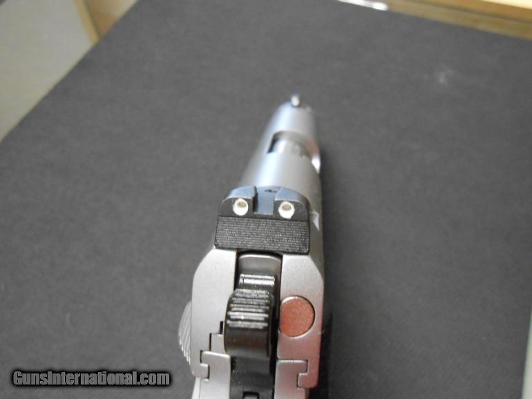 Description: SpecificationsCaliber: .45 ACP Height (inches) 90° to barrel: 5.25 Weight (ounces) with empty magazine: 35 Length (inches): 7.7 Magazine capacity: 7 Recoil spring (pounds): 22.0 Full-length guide rod frameMaterial: Stainless steel Finish: Satin silver Width (inches): 1.28 Front strap checkering slideMaterial: Stainless steel Finish: Satin silver BarrelLength (inches): 4 Material: Steel, match grade Twist rate (left hand): 16 sightsMeprolight Tritium 3- night sight, fixed Radius (inches): 5.7 gripsBlack Synthetic Double diamond triggerAluminum, match grade Factory setting (approximate pounds): 4.0 - 5.0 Shooter's Vault DOES NOT CHARGE CREDIT CARD FEES !!! Shooters Vault has 2 locations to choose from in Phoenix AZ we are a Family owned brick and mortar business. Our Hours of operation are: M-F 9-7 and Sat 9-6 Like us on Facebook under Shooters Vault and Shooters Vault Happy Valley to see Contact info and NEW product updates. You can find us on the web. By Google search for Shooters Vault and we will pop up. We are a CLASS III NFA dealer! Call us for details on purchasing and or filling out paper work. Seller reserves the right to end the at any time. All items sold as is no exchanges or returns. When you select your FFL Dealer they may fax/ email their FFL Documents. Please allow 1-3 business days for items to ship once payment and FFL are received. Shipping is at the Buyer cost. We ship Long guns UPS Ground for $25.00. Handguns are shipped USPS priority mail or UPS ground for $18.00. The shipping is non insured. If buyer wants insurance we will ship at the actual insurance cost rate per item. Once payment and FFL are received we will email you a tracking/delivery confirmation number. Stop by our stores, give us a call, or email us with any questions. SOLD |