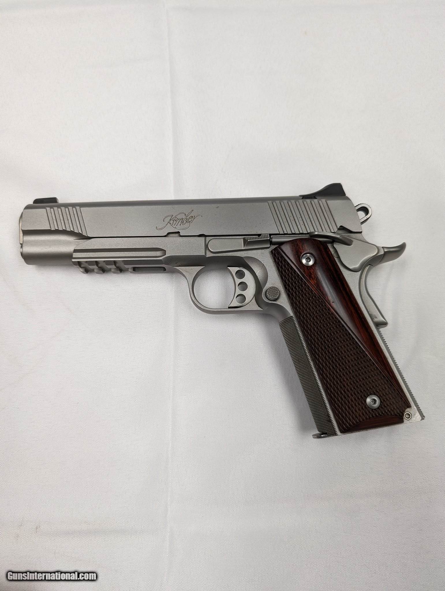 Description: Guns Listing ID: 1273634 THIS PISTOL IS IN EXCELLENT CONDITION AND COMES AS PICTURED WITH ONE ORIGINAL MAGAZINE SOLD Manufacturer: KIMBER Model: STAINLESS TLE/RL II Caliber Info: .45 ACP Condition: Used - Non-Certified Barrels: 5 BARREL Finish: STAINLESS/WOOD GRIPS |