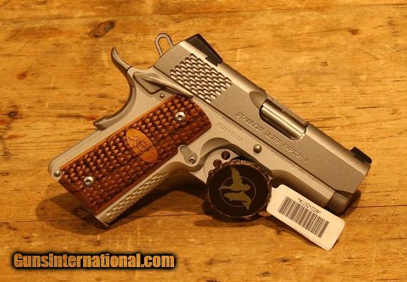 Description: Kimber Stainless Ultra Raptor II 1911 semi-auto pistol in 9mm. 3" stainless steel barrel. Stainless slide with satin silver finish with back-cut serrations. Aluminum frame with satin silver finish. Front strap checkering. Round heel frame. Scaled raptor pattern. Tactical wedge 3-dot tritium night sights, 4.8" radius. Aluminum match grade trigger. Zebrawood grips with scale pattern. Ambi safety. Full-length guide rod. 4.75" overall height, 6.8" overall length, 1.28" overall width. 25oz empty. This is a concealed piece that is not only great looking, its incredibly accurate and functional. The aggressive texturing leads to positive, no-slip manipulation when you need it most. Please call or email with any questions. Must ship to FFL. Comes new in box with: Hard plastic foam lockable case, 1 7-rd mag, lock, manuals. ***$40 2-DAY SHIPPING AND INSURANCE*** ***NO CREDIT CARD FEE*** SOLD Manufacturer: KIMBER Model: 3200374 Caliber Info: 9MM LUGER Condition: NEW IN BOX |
