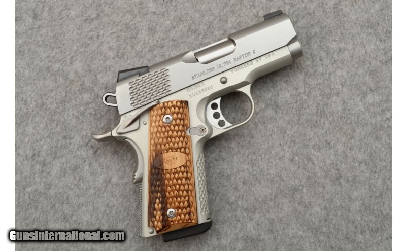 Description: SOLD Manufacturer: Recent. Caliber Info: 9mm Metal Condition: Pre-owned but in like new condition. Wood Condition: Pre-owned but in like new condition. Bore Condition: Pre-owned but in like new condition, just shot a few times. Barrels: 3 Triggers: Adjustable. Stock: Kimber Zibrawood with scale pattern grip panels. Weight: 1 Lb. 10 Ozs. Sights: Night Sights. Extras: Factory box and one magazine, one only. Item Location: Boise, ID |