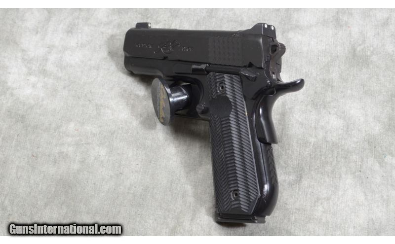 Description: This pistol features a full-size 1911 handle and a 3 inch barrel for easy carry. Kind of a marriage of a full-size 1911 and an officer's model. This one won't push your belt into your armpit when you sit and yet is very controllable. SOLD Caliber Info: .45 ACP Metal Condition: Excellent - could pass for new, certainly hasn't been shot much if at all. Wood Condition: LNIB Bore Condition: Bright and shiny Barrels: 3 Inch ~ stainless Stock: Black synthetic Weight: 28 oz. Sights: Three dot night sights Extras: Case and one magazine total Item Location: Rogers,, MN |