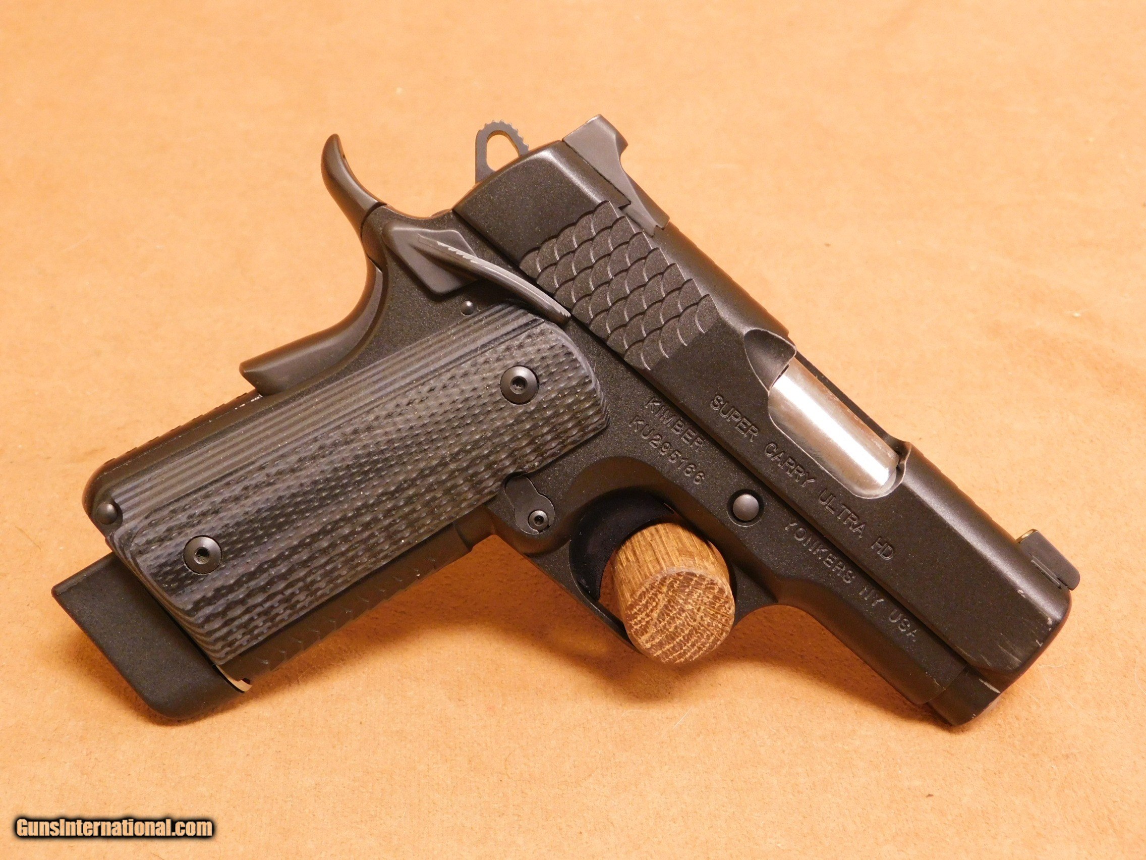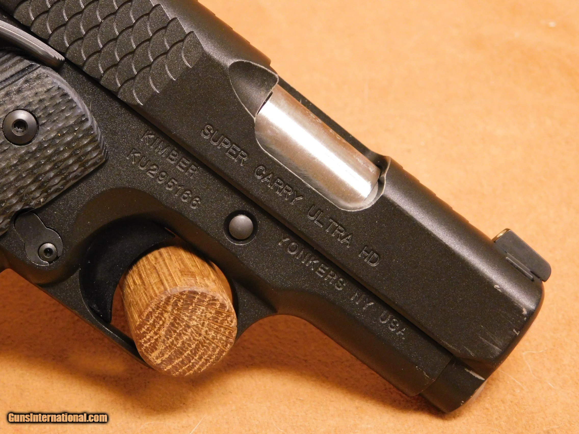 Description: This is a used Kimber Super Carry Ultra HD with factory night sights. It is a 3-inch 1911-style pistol in .45 ACP/Auto. It has some wear on the high edges, but would make a fantastic carry pistol. It comes with its factory box, papers, and three 7-round KimPro Tac-Mags. All items are also available for sale in our brick & mortar store and are subject to prior sale. Think long, think wrong. Payment On firearms, we typically only accept credit cards or money orders/cashier's checks.