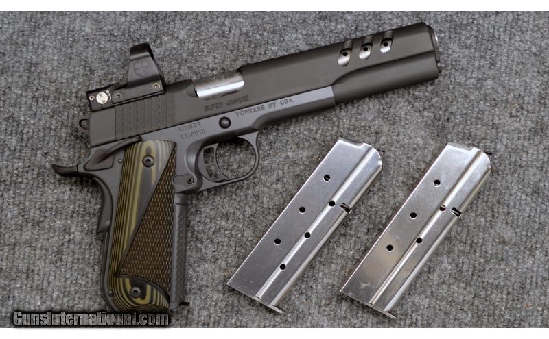 Description: For your consideration, a Kimber Super Jägare chambered in 10mm Auto. Jägare is Swedish for "Hunter," fitting with Kimber's intent that, "the Super Jägare is ideal for close range takedown of a variety of game and varmint species." Designed with micro red dot optic use in mind, the Super Jägare is devoid of iron sights. The slide windows serve as ventilation for the ported barrel. 10mm Auto SOLD Metal Condition: Excellent Wood Condition: Excellent Bore Condition: Excellent Barrels: 6" Ported Triggers: Serrated Weight: 2.75 lbs Sights: Leupold DeltaPoint Pro Item Location: Hamburg, PA |