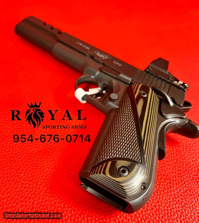 This SUPER JAGARE is in factory new condition and comes in the new KIMBER travel case. ROYAL SPORTING PRICE $2350 Delivered!! no sales tax to most* out of state sales! This JAGARE has a 18 month wait time to get and MSRP of over $2800.00! ROYAL SPORTING ARMS IS AN AUTHORIZED DEALER FOR KIMBER , NIGHTHAWK , WILSON COMBAT , KORTH, LES BAER and many more!! Please check out our other listings! Thanks For Looking! SOLD |