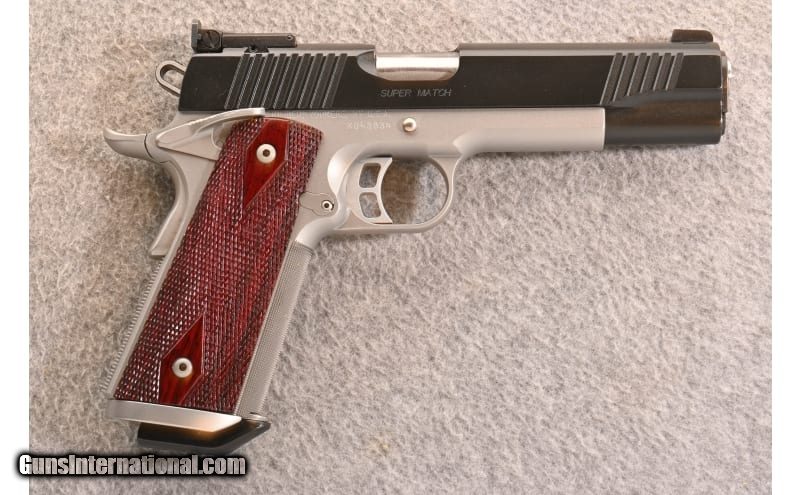Description: A Kimber Custom Shop Super Match in .45 ACP with a 5 inch barrel, two-tone .45 ACP SOLD Metal Condition: Excellent with light wear Wood Condition: Excellent with light wear Bore Condition: Bright and Shiny Barrels: 5 inches Triggers: Single action auto Weight: 2 lbs 8 oz Sights: "Bomar style adjustable rear, front post Item Location: Gonzales, LA |