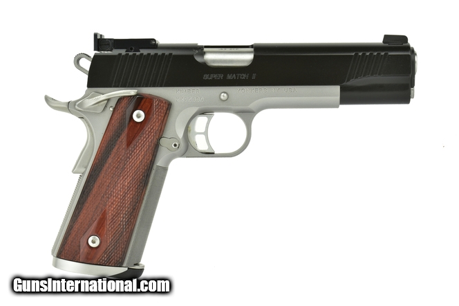 Description: Kimber Super Match II .45 ACP caliber pistol. 2-Tone target pistol with ambi safety, magwell, and adjustable rear sight. Very good overall condition with box.