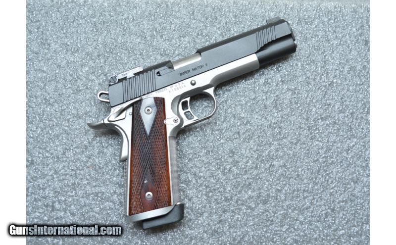 Description: SOLD Manufacturer: SN:K158916 Caliber Info: .45 ACP Metal Condition: Excellent Wood Condition: Excellent Bore Condition: Bright With Sharp Rifling Barrels: 5 Triggers: Aluminum Match Grade Trigger Stock: Checkered Rosewood Grips, Weight: 2 lbs. 6 ozs. Sights: Blade Front, Adjustable Rear Dovetail Sight Extras: Custom Shop With Case. Item Location: Hazelwood, MO |