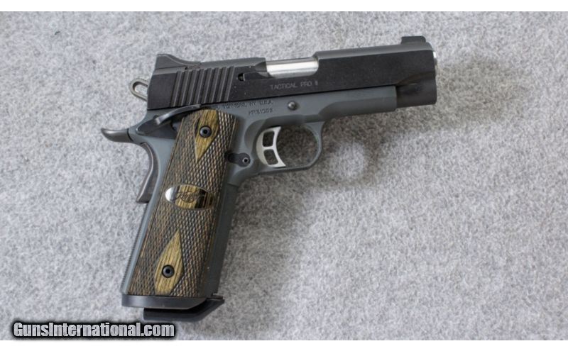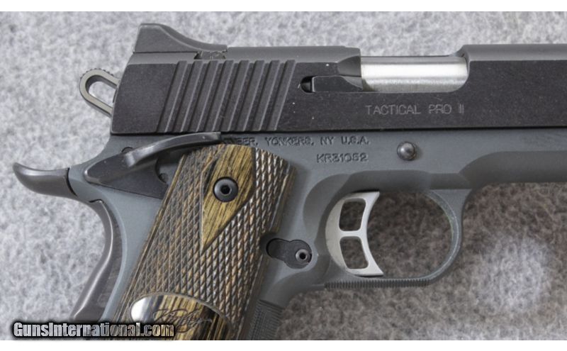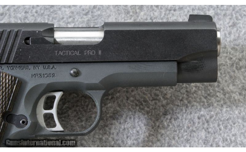 Description: The Kimber Tactical Pro II model has all the performance enhancing features demanded by law enforcement and cover every application from concealed carry to tactical response. Kimber builds their 1911 pistols right here in America - something that makes sense, as few things are as American as a 1911. Virtually every critical component of every pistol is manufactured inside the Kimber factory. SOLD Caliber Info: .45 acp Metal Condition: Very good with a little wear on some sharp edges and a scratch from improper take down Wood Condition: Excellent Bore Condition: Excellent Barrels: 4 inch stainless Match Grade barrel with 1:16 inch twist Stock: Hardwood pistol grip stock Stock Dimensions: 13 5/8 inch LOP Fore End: Checkered laminated wood double diamond grips with Kimber logo Weight: 32 oz. with empty magazine Sights: Low profile three dot night sights Item Location: Lehi, UT |