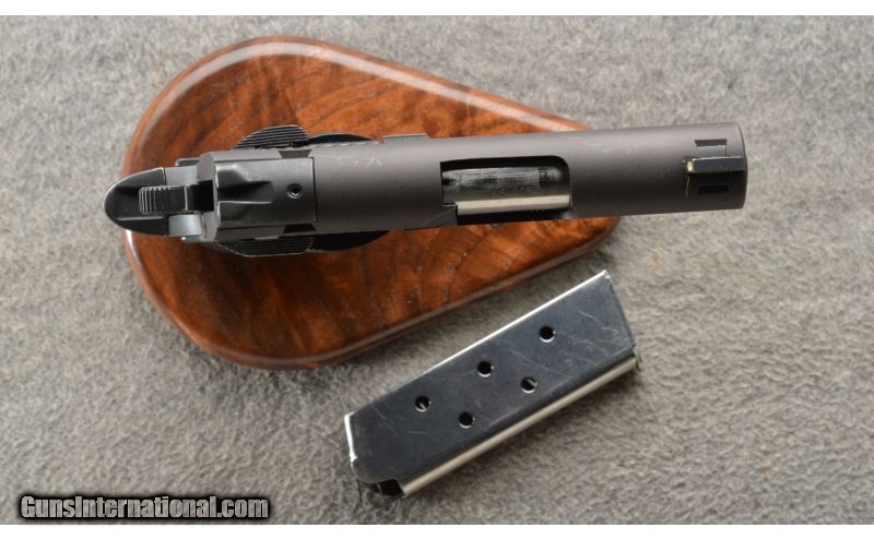 Description: This fine Kimber compact pistol is still a full power model. The pistol is in excellent condition and comes with the case and an extra 7 round mag. Aluminum Finish: Charcoal gray, KimPro II, 30 lines-per-inch front strap checkering, 30 lines-per-inch checkering under trigger guard. Fixed low-profile 3-dot tritium night sights. Double diamond laminated wood with Kimber logo. SOLD Caliber Info: .45 ACP Chambers: 7+1 Semi-Auto. Metal Condition: Excellent. Wood Condition: Excellent. Bore Condition: Excellent. Barrels: 3 inch steel match grade. Triggers: Premium Aluminum Trigger, Factory setting (approximate pounds): 4.0 - 5.0 Stock: Double diamond laminated wood with Kimber logo. Weight: 1 Lb 12 Oz. Sights: Fixed low-profile 3-dot tritium night sights Extras: Comes with the case, lock, extra mag paperwork and sight tool. Item Location: Owatonna, MN |