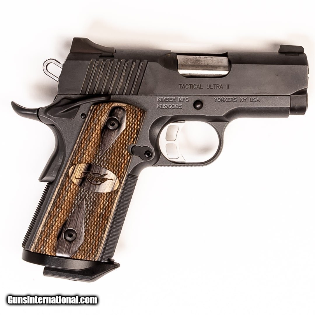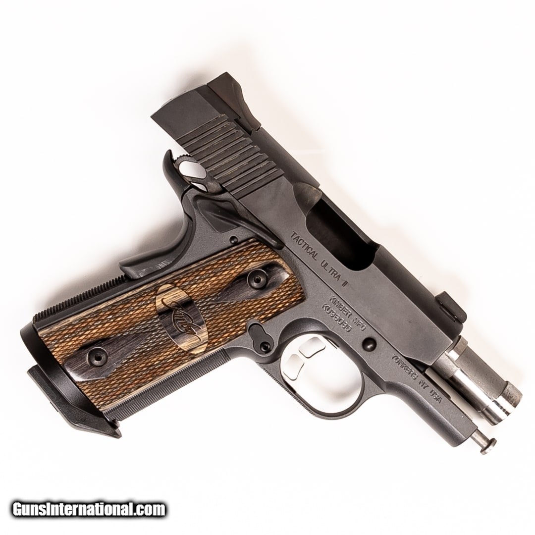 Description: Guns Listing ID: 469003 The Kimber Tactical Ultra II is a semi-automatic, 1911-style handgun packed with performance-enhancing features. It boasts an aluminum frame, match-grade steel barrel, and a premium aluminum match-grade trigger. Other features include double diamond grips and an ambidextrous safety. Compact and lightweight, the Kimber Tactical Ultra II is suitable for concealed carry. The original case, manual, and one 7-round magazine are included. SOLD Manufacturer: KIMBER Model: TACTICAL ULTRA II Caliber Info: .45 ACP Condition: Used - Certified Barrels: 3 BARREL Finish: BLACK |