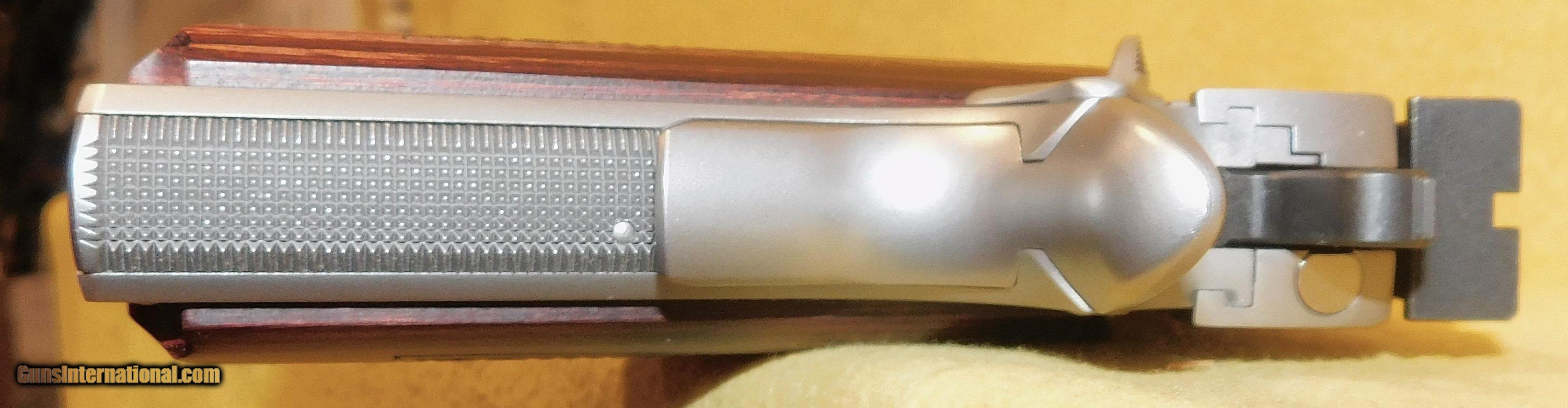 Description: KIMBER TARGET II IN 9MM CAL., WITH 5" BARREL. COLOR STAINLESS STEEL. CONDITION 98% LIKE NEW. SERIAL NUMBER KF136307. KIMBER MODEL TARGET II IN 9MM CALIBER, MIRROR BORE, GRIPS EXCELLENT, COMES WITH HARD CASE ONE FACTORY MAGAZINE AND PAPERS, 98% LIKE NEW OVERALL CONDITION, OUR STOCK # D8053 Price: $895.00 Contact Seller |