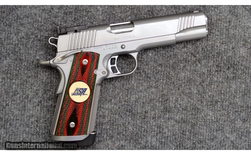 Description: For your consideration, a Kimber Team Match II chambered in .45 ACP. Designed specifically for the USA Shooting Rapid Fire Pistol Team to use in national and international competitions to train for the Olympics, the Team Match II features tritium night sights, a funneled magazine well, ambi safety, forward cocking serrations, and a full length Guide rod. .45 ACP SOLD Metal Condition: Excellent Wood Condition: Excellent Bore Condition: Excellent Barrels: 5 Triggers: Serrated Weight: 2.5 lbs Sights: Iron Sights Item Location: Hamburg, PA |