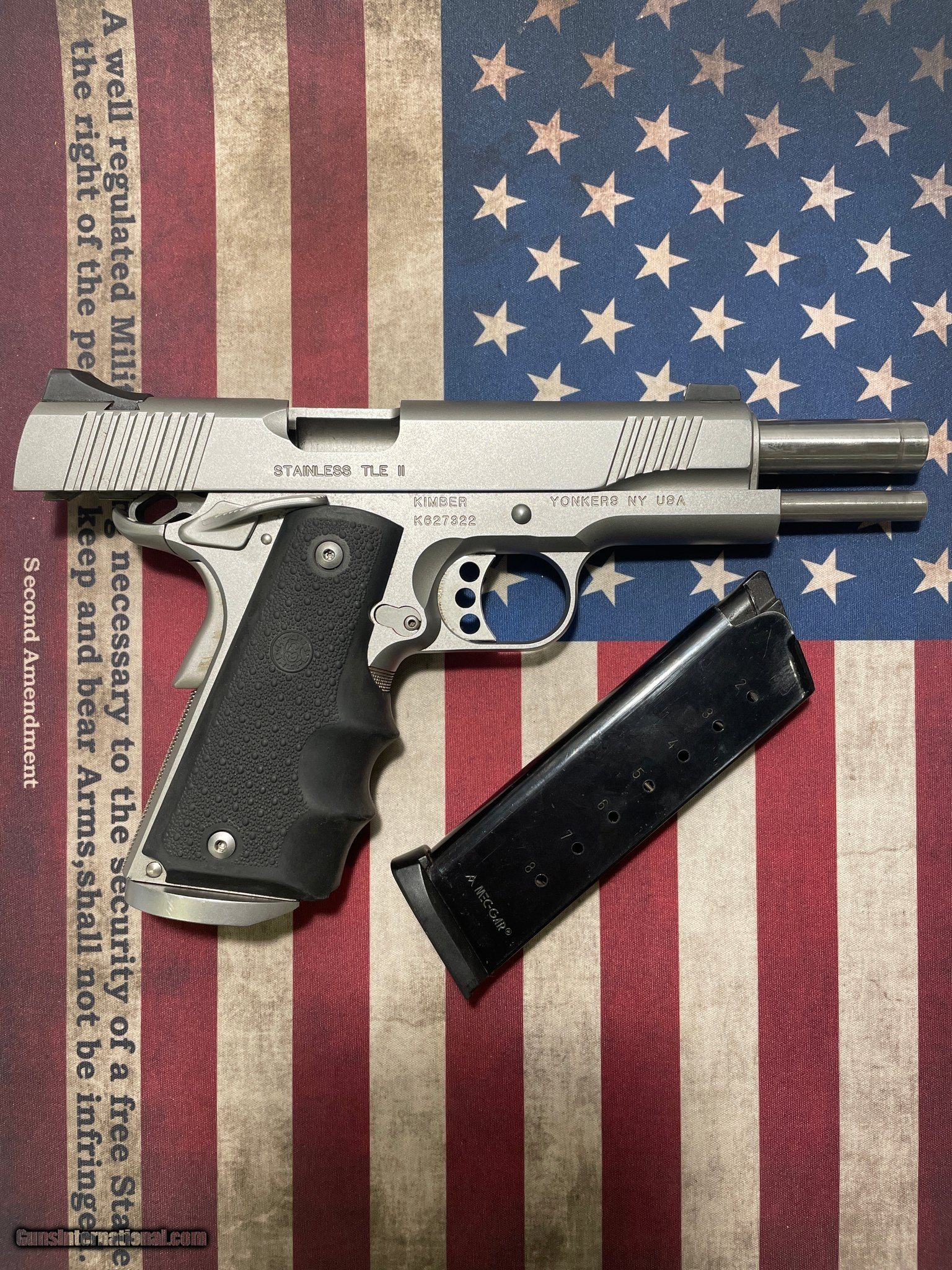 Description: Guns Listing ID: 475729 Cosmetically this gun could use some love as it has some wear on the sights front and rear. It also has noticeable wear on the barrel where it is stamped 45 ACP. Chambers and cycles perfectly. Comes with a hard case and 1 magazine. This could be your next 45 in your collection! SOLD Manufacturer: KIMBER Model: TLE II Caliber Info: .45 ACP Condition: Used - Non-Certified Barrels: 5 BARREL Action: SEMI AUTOMATIC Finish: STAINLESS |