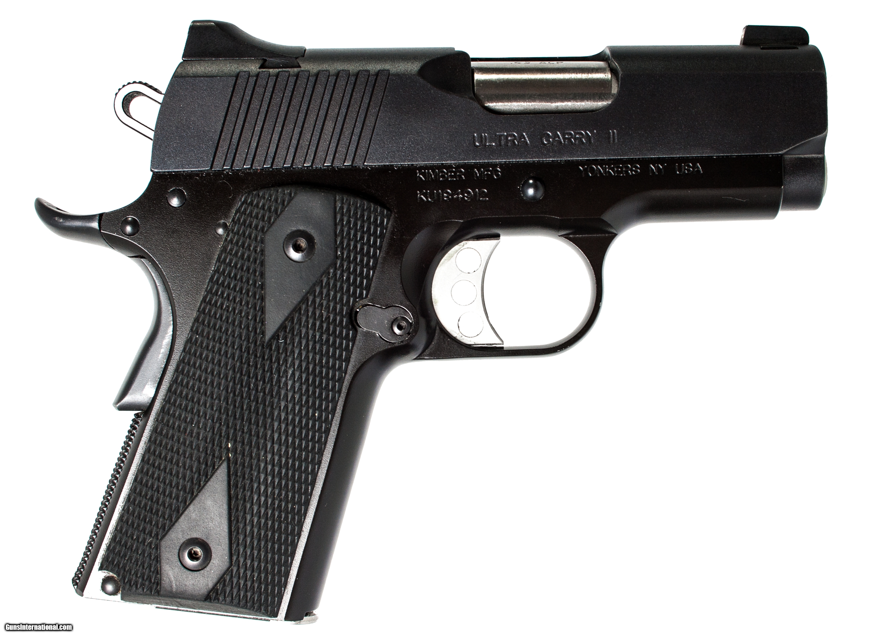 Kimber Ultra Carry II chambered in 45 acp with a 3 inch barrel case and 2 extra magazines. This gun is in excellent condition and is covered by Dury's Lifetime Warranty.