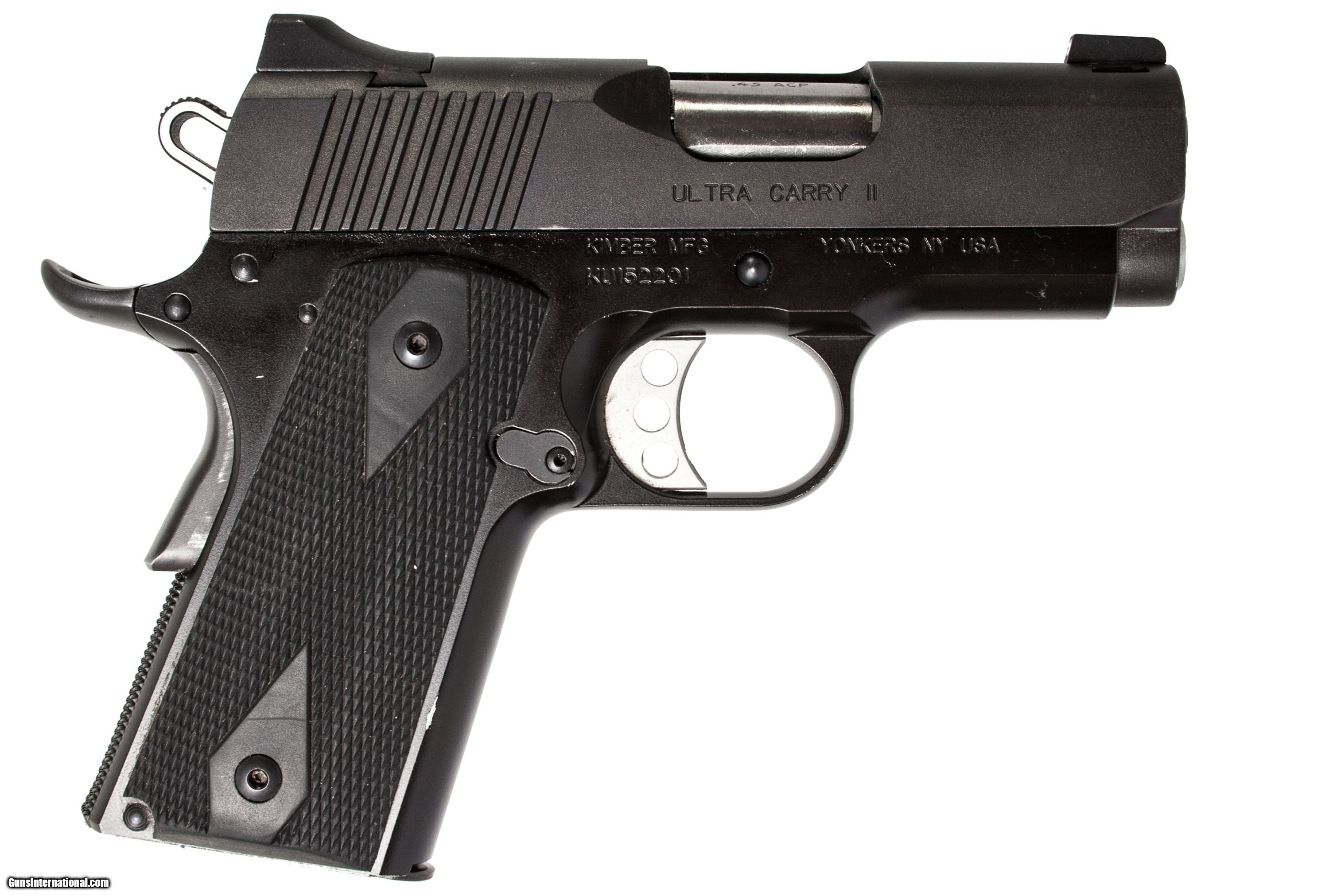 Kimber Ultra Carry II chambered in 45 ACP with a 3 inch barrel a case and 2 extra magazines. This gun is in excellent condition and is covered by Dury's Lifetime Warranty.