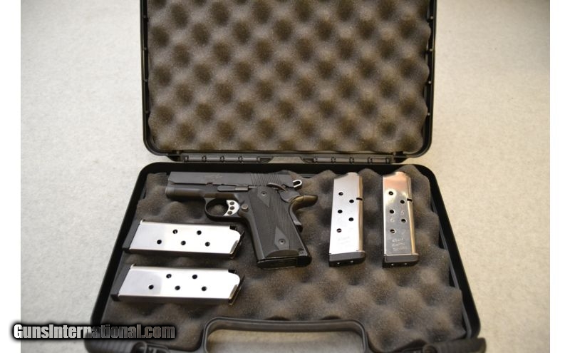 Description: SOLD Caliber Info: .45 ACP Metal Condition: Very good; has signs of use and handling Wood Condition: Grips are in good condition; have some wear to them Bore Condition: Excellent Barrels: 3 Triggers: Skeletal 3-hole aluminum Stock: Black rubber grips Weight: 1 1/2lbs Sights: Low profile blade & groove sights Extras: Includes the factory case and a total of 5 magazines Item Location: Green Bay, WI |
