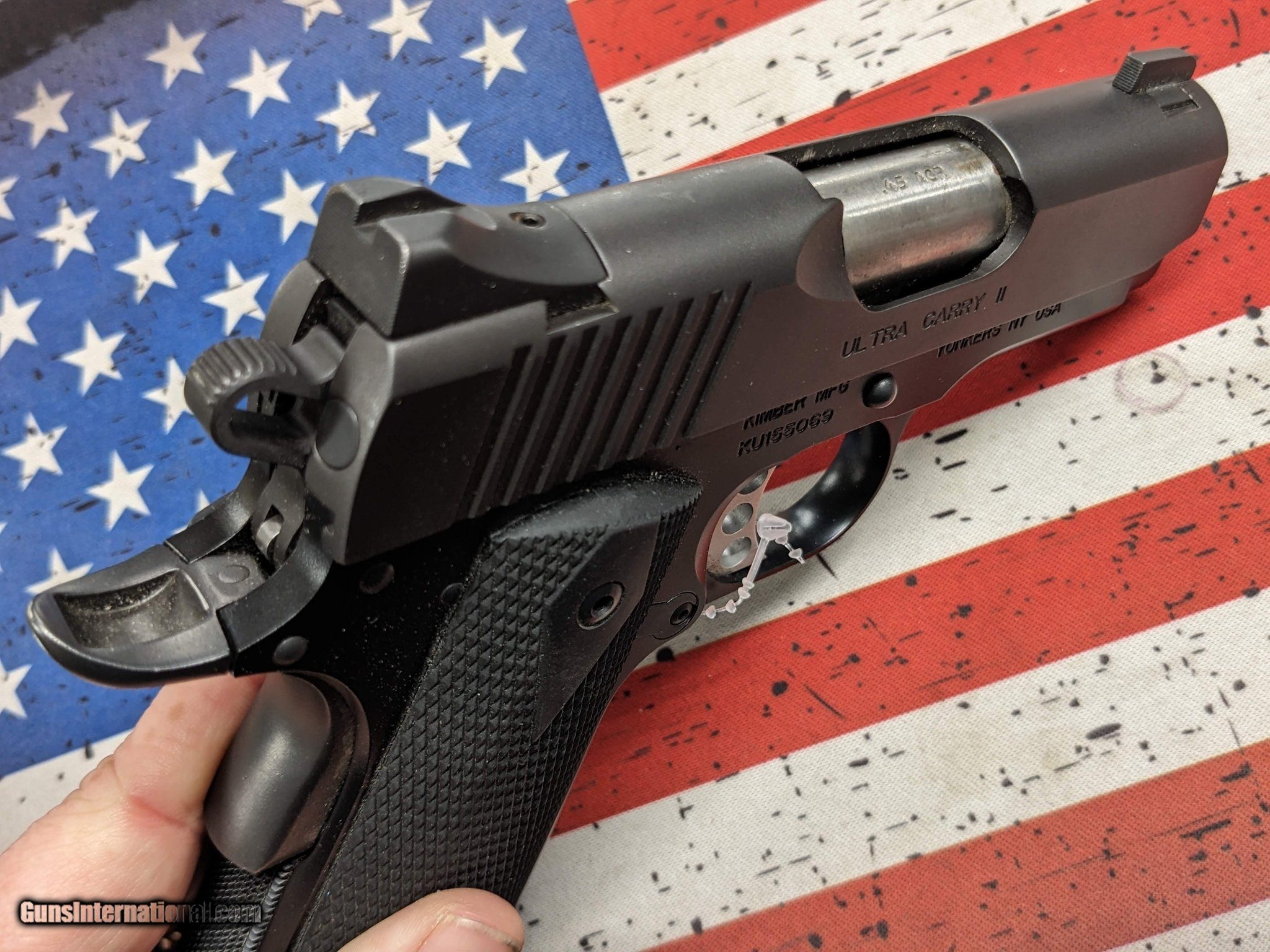 Description: Guns Listing ID: 1252043 Kimber Ultra Carry II #ku155069 45 Auto/Acp Semi Auto With HARD CASE ONE MAG 11098981 SOLD Manufacturer: KIMBER Model: ULTRA CARRY II Caliber Info: .45 ACP Condition: Used - Non-Certified Barrels: 3 BARREL Finish: BLACK |