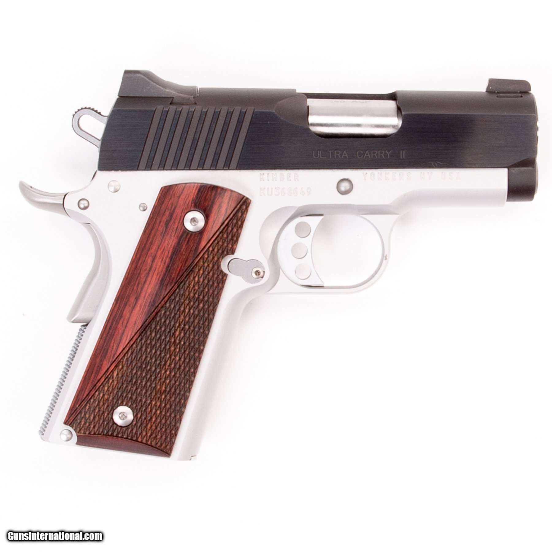 Description: Guns Listing ID: 468175 This Kimber features one 7-round magazine, the original case and owner‚‚s manual. Get the best bang for your buck when you get a Certified Used Firearm . When you see the Certified Used stamp on any of our firearms, you can be confident that you’re getting exactly what you want – a gun only in very good to excellent condition and held to the highest quality standard. All Certified Used Guns come with a ‘no questions asked’ return policy . PLUS, ALL CERTIFIED USED GUNS SHIP FREE SOLD Manufacturer: KIMBER Model: ULTRA CARRY II Caliber Info: .45 ACP Condition: Used - Certified Barrels: 3.25 Action: SEMI AUTOMATIC Finish: STAINLESS & BLACK Weight: 1.6 |