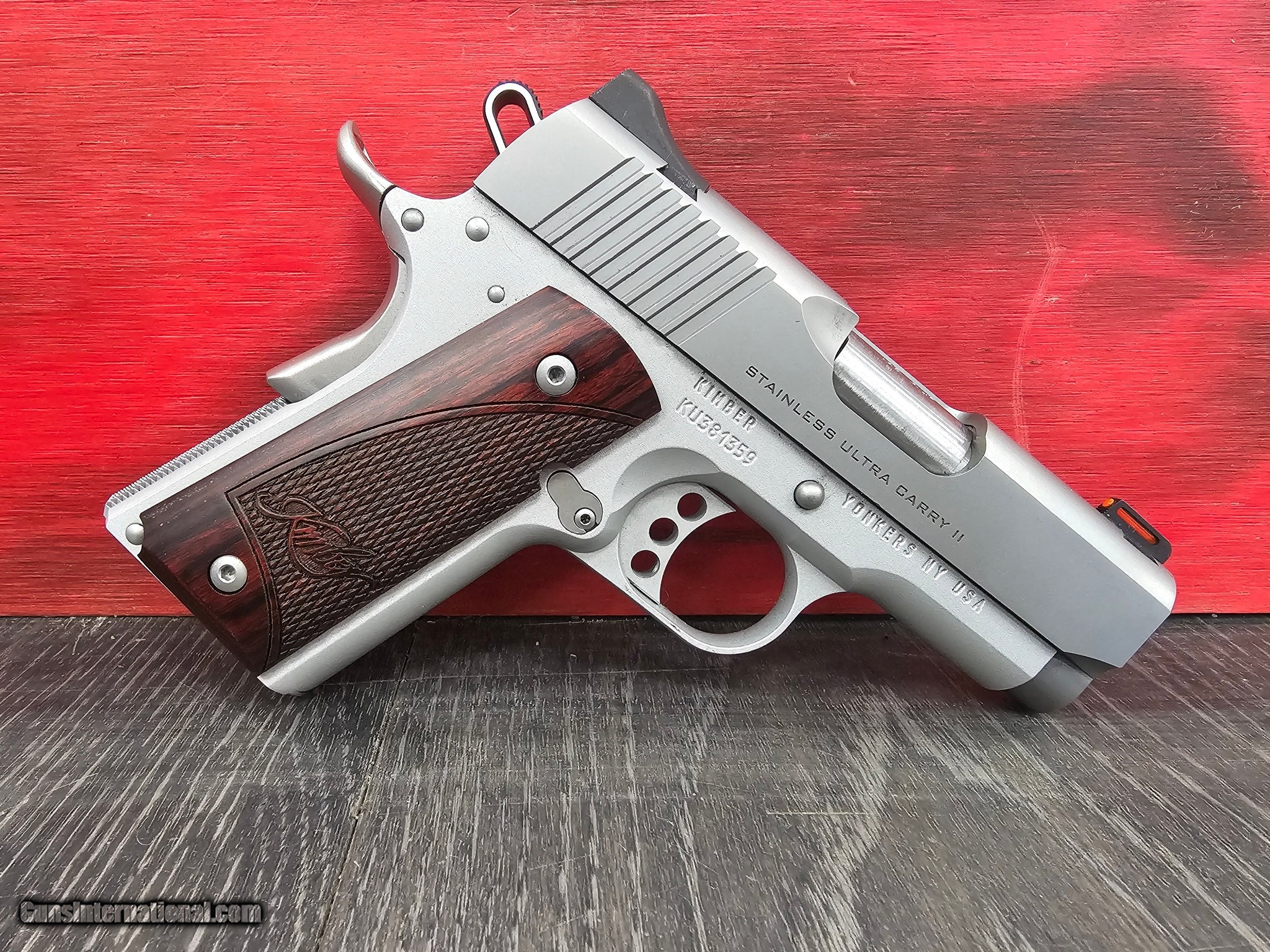 Description: Guns Listing ID: 480825 KIMBER MODEL ULTRA CARRY II STAINLESS SEMI AUTO PISTOL, WOOD GRIPS, 3 INCH BARREL, 7 ROUNDS, .45 ACP, FRONT FIBER OPTIC SIGHT, COMES WITH HARD CASE SOLD Manufacturer: KIMBER Model: ULTRA CARRY II Condition: Used - Non-Certified Barrels: 3 Gauge Info: .45 ACP Finish: matte stainless |