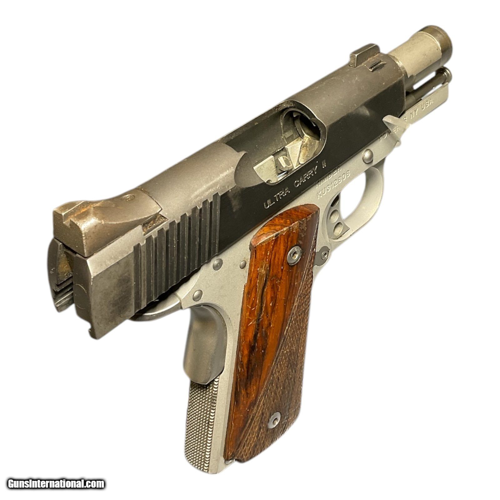 Description: Guns Listing ID: 490608 In good condition with light holster wear. Doesn’t come with box/case. SOLD Manufacturer: KIMBER Model: ULTRA CARRY II Caliber Info: .45 ACP Condition: Used - Non-Certified Barrels: 3 Finish: blue/stainless |