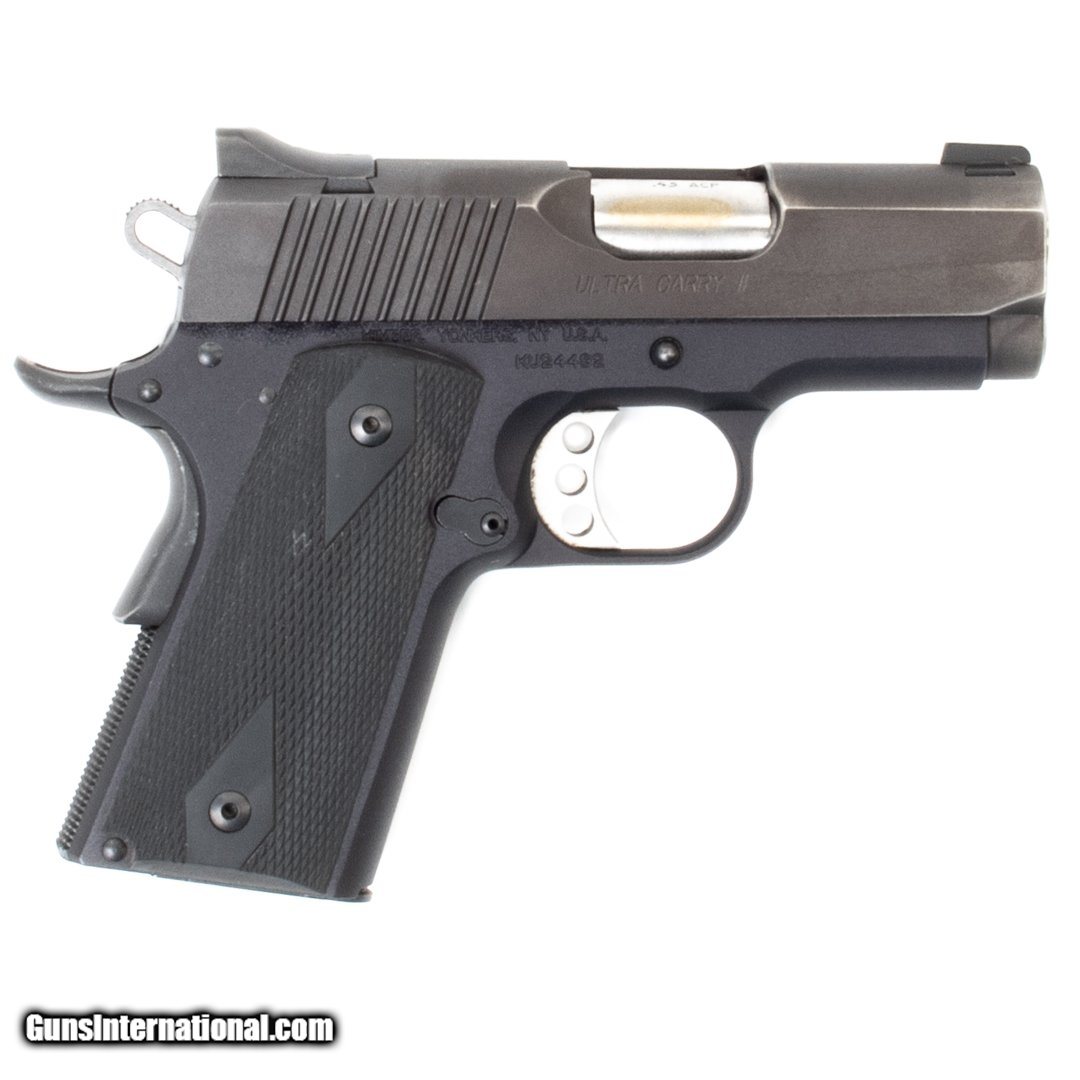 Description: Guns Listing ID: 542246 1-6 round magazine, the original case, and manual are included. Get the best bang for your buck when you get a Certified Used Firearm . When you see the Certified Used stamp on any of our firearms, you can be confident that you’re getting exactly what you want – a gun only in very good to excellent condition and held to the highest quality standard. All Certified Used Guns come with a ‘no questions asked’ return policy . SOLD Manufacturer: KIMBER Model: ULTRA CARRY II Caliber Info: .45 ACP Condition: Used - Certified Barrels: 3.10 BARREL Action: SEMI AUTOMATIC Finish: black Weight: 1.6 |