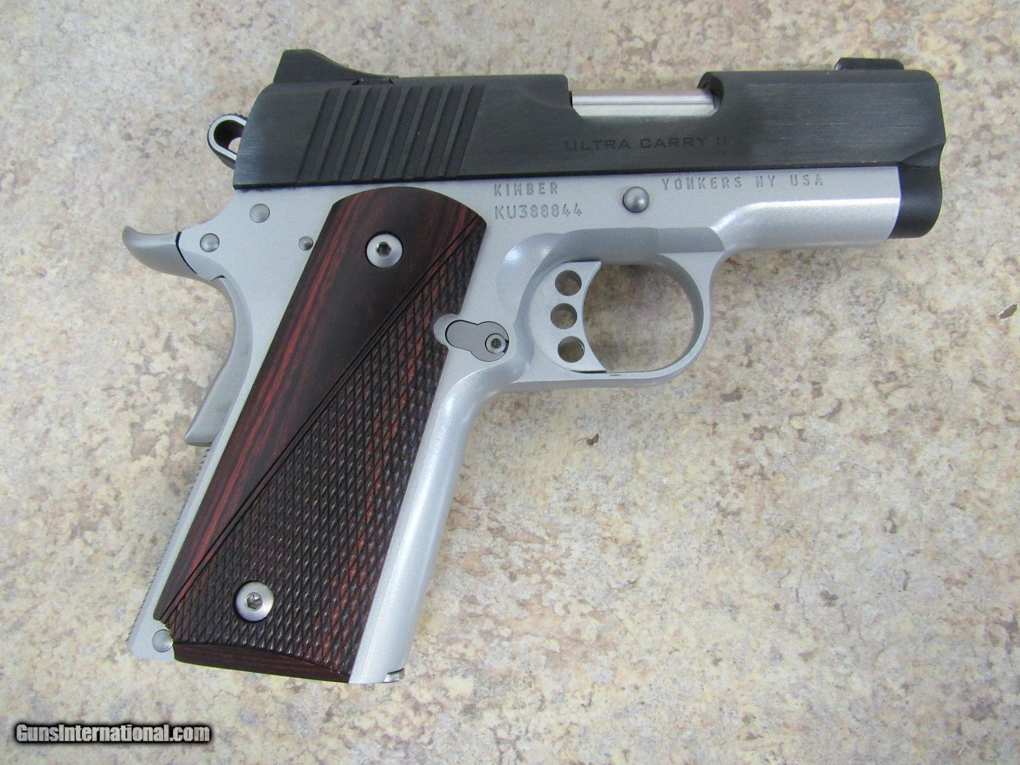 Description: Guns Listing ID: 531943 Comes with one magazine. Nice compact handgun in wonderful condition. SOLD Manufacturer: KIMBER Model: ULTRA CARRY II Caliber Info: .45 ACP Condition: Used - Non-Certified Barrels: 3 Action: SEMI AUTOMATIC Finish: BLUED AND SILVER |