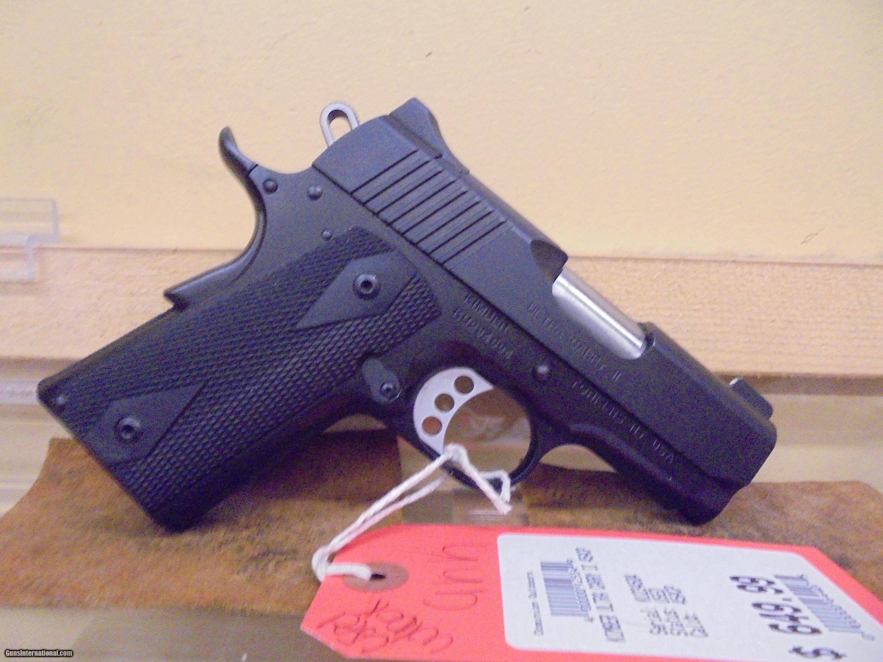 Description: USED VERY GOOD CONDITION Kimber 3200072 Ultra Carry II Pistol w/Night Sights - .45 ACP, 3 in, Aluminum Frame, Matte Black Oxide Slide, 7 Rd USED HAS BEEN SHOT SOME AS FACTORY HARDCASE & PAPERWORK PRICE REFLECTS PAYMENT BY MONEY ORDER / CASHIERS CHECK. A 3% PREMIUM IS ADDED FOR CREDIT CARDS ****PLEASE CALL IN THE WITH THE SELLER’S INVENTORY NUMBER IF INQUIRING ABOUT A FIREARM****** WE DO NOT SHIP FIREARMS AND/OR FIREARMS’ PARTS OUT OF THE 50 UNITED STATES, SO DON’T ASK PRICE REFLECTS PAYMENT BY MONEY ORDER / CASHIERS CHECK. A 3% PREMIUM IS ADDED FOR CREDIT CARDS. WE DO OFFER A LAYAWAY PLAN. YOU CAN LAYAWAY FOR 30, 60, OR 90 DAYS. THERE IS A $5.00 CHARGE FOR EVERY 30 DAYS ITEM IS ON LAYAWAY. WE ALSO REQUIRE A 20% DOWN PAYMENT ON LAYAWAY ITEM. LAYAWAYS ARE NON REFUNDABLE. HERE IS HOW THIS PROCESS WORKS. YOU WOULD CALL US AT 540-337-9218 WITH LISTER # TO PURCHASE THE GUN. THEN ONCE I HAVE RECEIVED PAYMENT AND AN FFL (FEDERAL FIREARMS LICENSE) FROM A LICENSED DEALER IN YOUR AREA OF YOUR CHOICE. WE WILL THEN SHIP THE GUN TO THEM. YOU WOULD THEN PICK UP THE GUN AT YOUR LOCAL DEALER AND DO PAPER WORK THERE. DOMINION OUTDOORS 15 ANGELA COURT FISHERSVILLE ,VA 22939 540-337-9218 540-337-2422 fax ****PLEASE CALL IN THE WITH THE SELLER’S INVENTORY NUMBER**** ***PLANO HARD CASES AVAIABLE FOR PURCHASE $18.99 WITH THE PURCHASE OF A FIREARM.** SOLD |