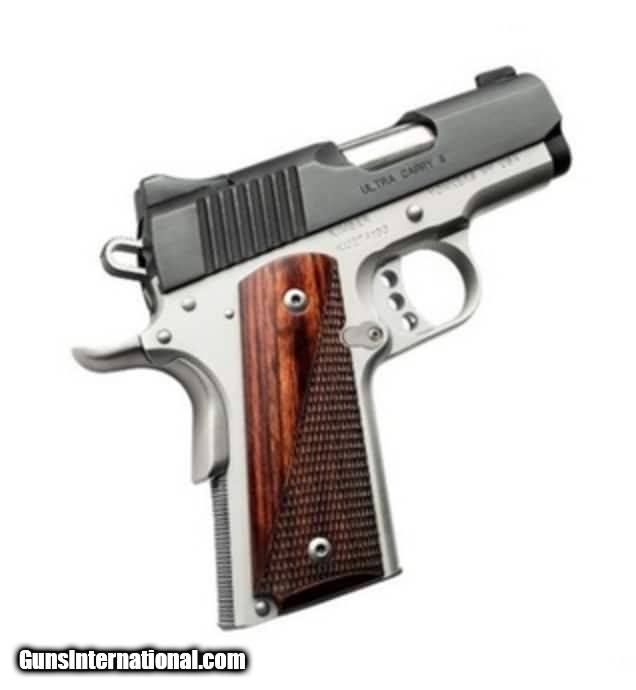 Description: Guns Listing ID: 517107 The Ultra Carry II (Two-Tone) is a hallmark of Kimber quality, complete with a brushed-polished carbon slide, aluminum frame and smooth/checkered rosewood grips. SOLD Manufacturer: KIMBER Model: ULTRA CARRY II TWO-TONE Caliber Info: 45 ACP Condition: new Barrels: 3" BARREL |