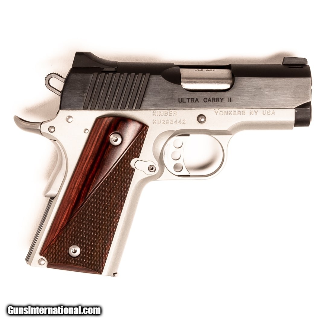 Description: Guns Listing ID: 662776 The Kimber Ultra Carry II is a premium-grade compact 1911 packed full of features. This scaled-down 1911 is a perfect choice for personal protection, home defense, and as a backup duty sidearm. This Ultra Carry II is equipped with black-out sights and includes the original case, manual, and two 7-round magazines. Get the best bang for your buck when you get a Certified Used Firearm . When you see the Certified Used stamp on any of our firearms, you can be confident that you’re getting exactly what you want – a gun only in very good to excellent condition and held to the highest quality standard. All Certified Used Guns come with a ‘no questions asked’ return policy . PLUS, ALL CERTIFIED USED GUNS SHIP FREE! SOLD Manufacturer: KIMBER Model: ULTRA CARRY II Caliber Info: .45 ACP Condition: Used - Certified Barrels: 3 barrel Finish: TWO TONE BLACK AND S |