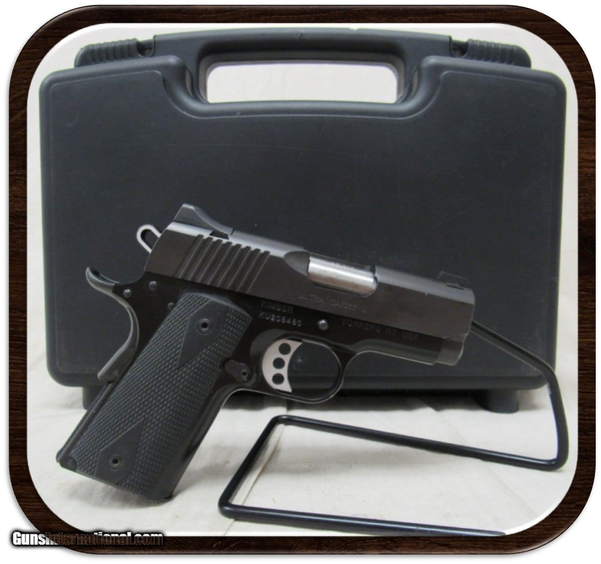 Description: Guns Listing ID: 709247 KIMBER ULTRA CARRY - 45 ACP - 7-ROUNDS - 3\" BARREL HAMMER-FIRED SINGLE-ACTION SEMI-AUTO PISTOL INCLUDES KIMBER HARDCASE W/ OWNER‚‚S MANUAL + GALCO RH IWB LEATHER HOLSTER The Kimber Ultra Carry II is a semi automatic handgun available in .45 ACP & 9mm. A hallmark of Kimber quality, the Ultra Carry II features a brushed-polished carbon slide. It‚‚s reduced dimensions and light weight make this pistol a great option for concealed carry. This model is chambered in .45 ACP, features a matte black finish for both frame and slide, and has black synthetic double diamond grip SOLD Manufacturer: KIMBER Model: ULTRA CARRY Caliber Info: 45 ACP Condition: Used - Non-Certified Barrels: 3 BARREL Finish: BLACK |