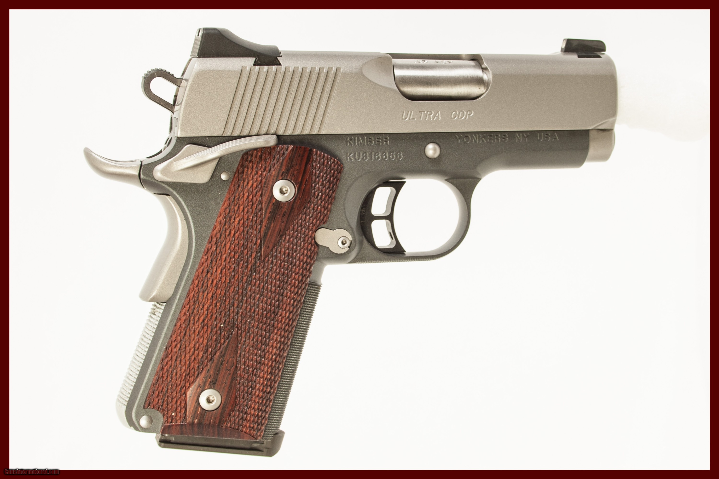 KIMBER ULTRA CDP CHAMBERED IN 45ACP WITH A 3 INCH BARREL. THIS GUN IS IN GOOD CONDITION AND IS COVERED BY DURY'S LIFETIME WARRANTY.