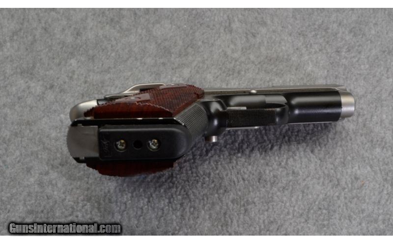 Description: This Kimber Custom Shop Ultra CDP II features a two-tone slide and frame with rosewood grip panels. Aggressive grip and trigger guard, ambidextrous safety and skeletonized hammer and trigger. SOLD Caliber Info: .45 ACP Chambers: 7 round magazine Metal Condition: Very Good Wood Condition: Very Good Bore Condition: Very Good. Bright. Barrels: 3 inch Triggers: Skeletonized Weight: 1.65 pounds Sights: White dots Item Location: Springfield, OR |
