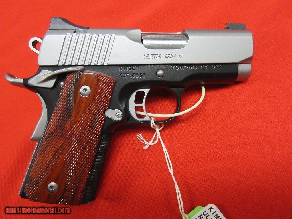 Description: Kimber Ultra CDP II 9mm 3" w/ Night Sights -- The Ultra CDP II: matte black finish on the frame and stainless finish on the slide and controls, steel slide and alloy frame, fixed night sights, match grade barrel, chamber, and trigger, lowered and flared ejection ports, loaded chamber indicator, ambidextrous safety, rosewood double diamond grips, full carrymelt treatment, and a checkered front strap and mainspring housing. Near new condition with four factory mags. SOLD |