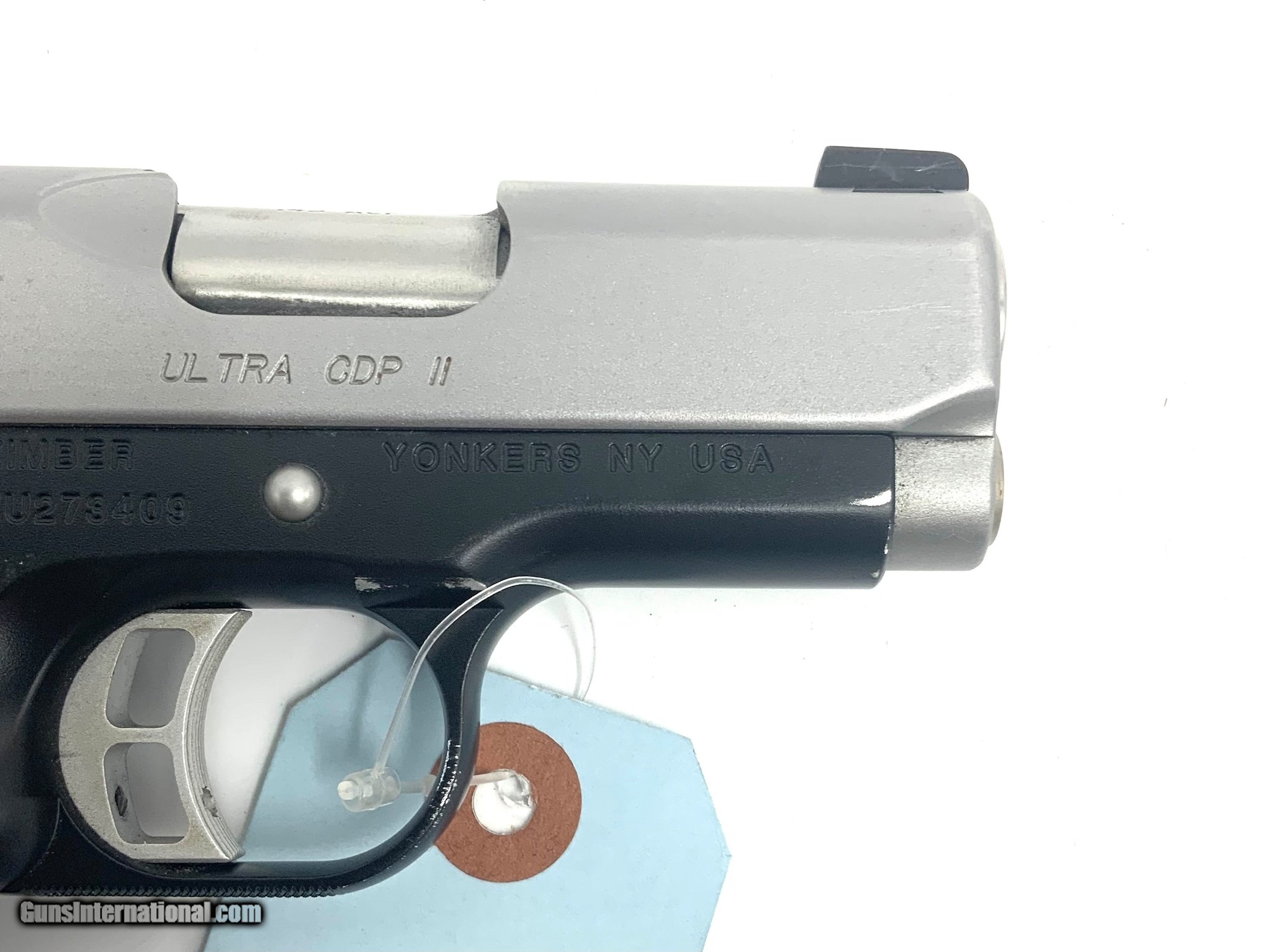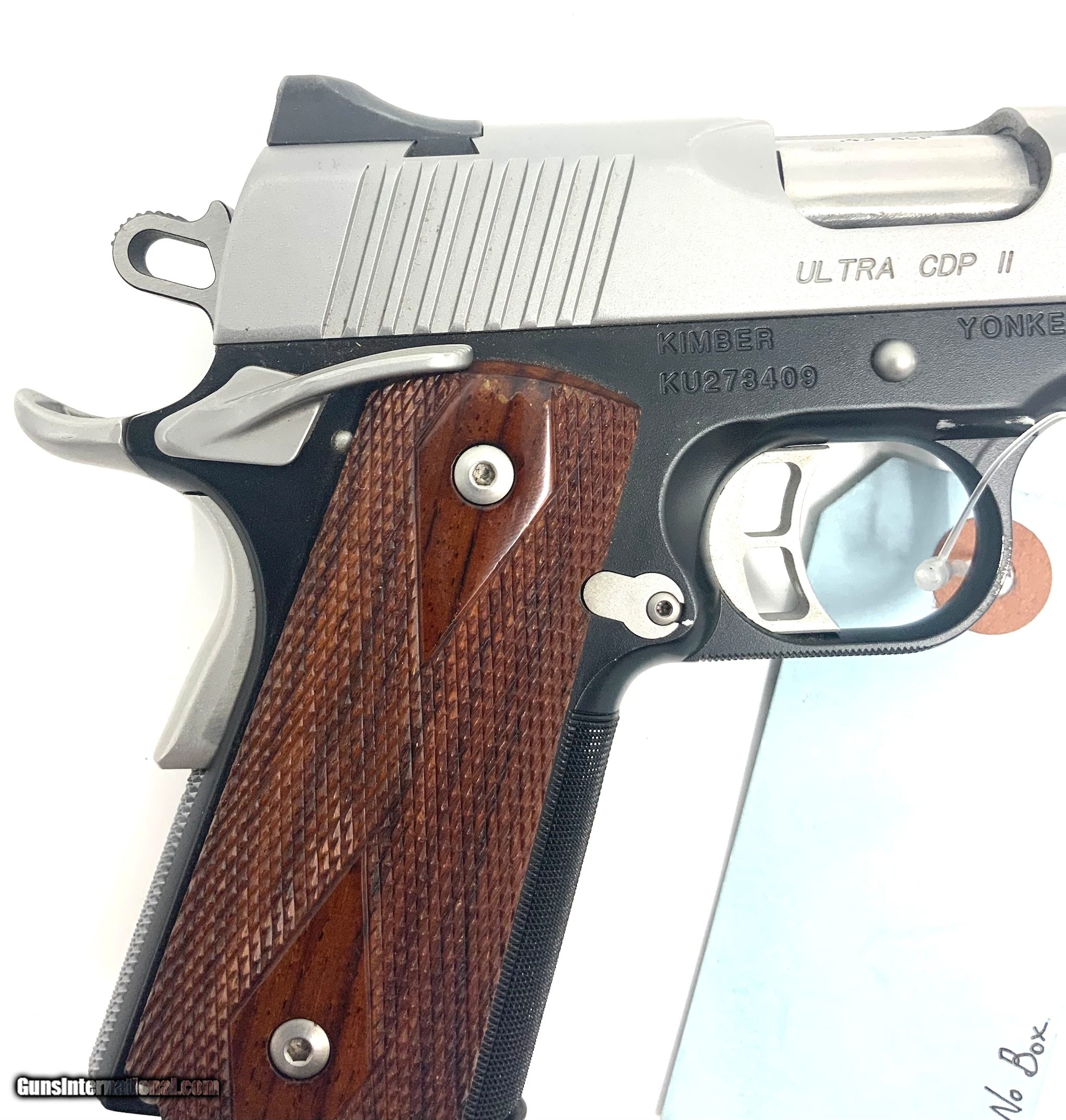 Description: Guns Listing ID: 505213 For Sale is a Kimber Ultra CDP ( Custom Defense Package) II in 45 acp -2-tone model black frame, silver slide -Front and back strap checking -Ambidextrous manual safety - 3 dot night sights ( Not super vibrant and visible like a new set) -Holster Wear present on frame, around trigger guard -chipping on top of the right side wooden grip -Comes with (1) 7rd magazine -Aluminum Frame -Factory trigger 4-5lbs ***NO BOX SOLD Manufacturer: KIMBER Model: ULTRA CDP II Caliber Info: 45 ACP Condition: Used - Non-Certified Barrels: 3 BARREL Finish: STAINLESS |