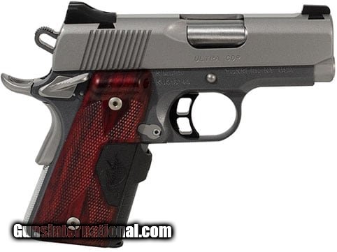 Description: Guns Listing ID: 835947 The Kimber CDP (Custom Defense Package) is a semi-automatic 1911 pistol. It features a KimPro II finish 7075-T7 aluminum frame with carry melt treatment for snag-free edges stainless steel slide fixed low-profile three-dot tritium night sights premium aluminum trigger checkered front strap ambidextrous thumb safety full-length guide rod recoil spring and double diamond rosewood grips. This Ultra CDP model features a satin stainless steel slide and aluminum frame as well as Crimson Trace Rosewood Double Diamond grips. SOLD Manufacturer: KIMBER Model: ULTRA CDP LG Caliber Info: .45 ACP Condition: new Barrels: 3 BARREL |