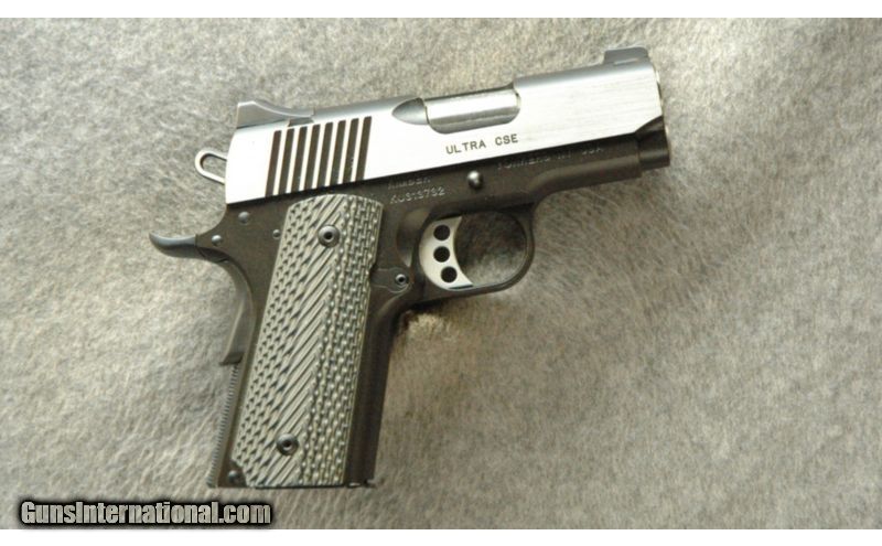 Description: Kimber Ultra CSE pistol, .45 Auto. Excellent condition, great choice for concealed carry in states where legal. SOLD Caliber Info: .45 Auto Metal Condition: Excellent, Few Light Wear and Handling Marks Wood Condition: Grips Are In Excellent Condition Bore Condition: Bright Barrels: 3 Triggers: Single Action, Aluminum Trigger, Lightweight Hammer, Extended Grip Safety & Safety Lever Stock: Factory Wood Grips Weight: 2 lbs Sights: 3 White Dot Iron Sights Extras: With one mag and hard case Item Location: La Vista, NE |