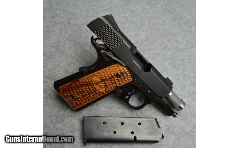 Description: SOLD Caliber Info: .45 ACP Chambers: 7 Rounds Metal Condition: Excellent Wood Condition: Excellent Bore Condition: Excellent Barrels: 3 Inches Triggers: Aluminum, match grade Stock: Zebra wood, scale pattern Weight: 1 Pound 12 Ounces Sights: Tactical Wedge Tritium night sights, fixed. Extras: Box Item Location: Noblesville, IN |