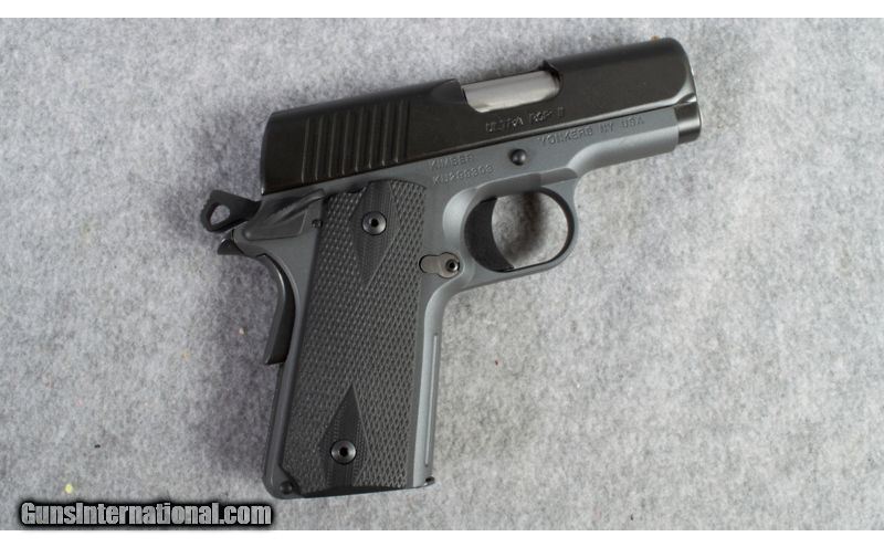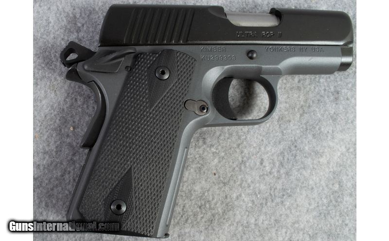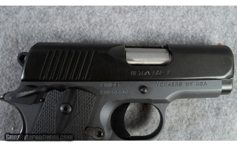 Description: Kimber Custom Shop Ultra RCP II pistol. Tunnel type sight with brass bead added for front sight. 5 shot 45acp with 3" barrel. Nice handy concealable pistol. .45 ACP SOLD Chambers: 45 ACP Metal Condition: Very Good Bore Condition: Bright Barrels: 3 Triggers: Single Action Sights: Tunnel type sight with brass bead Item Location: short pump |
