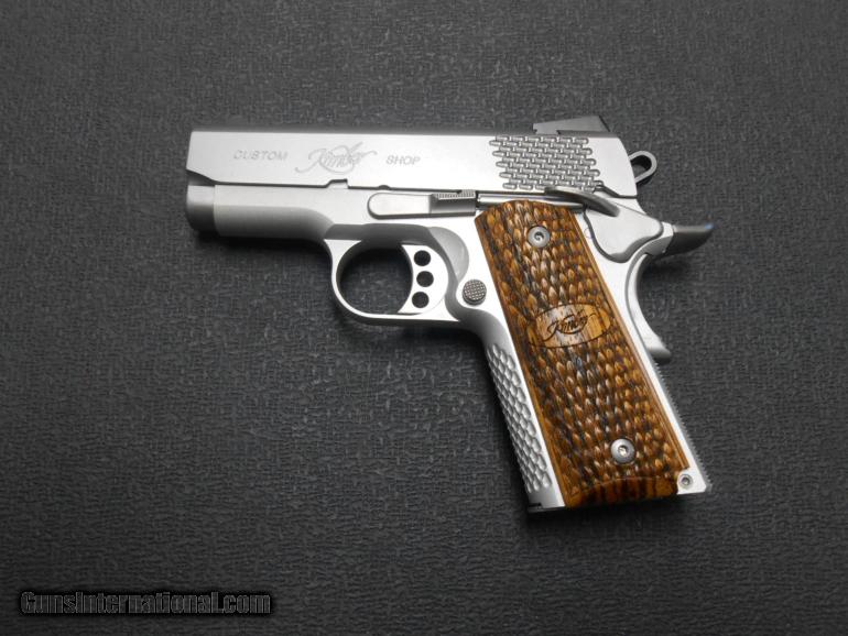 Description: SpecificationsCaliber: .45 ACP Height (inches) 90° to barrel: 4.75 Weight (ounces) with empty magazine: 25 Length (inches): 6.8 Magazine capacity: 7 Ambidextrous thumb safety Recoil spring (pounds): 18.0 Full-length guide rod FrameMaterial: Aluminum Finish: Satin silver KimPro II™ frame finish Width (inches): 1.28 SlideMaterial: Stainless steel Finish: Satin silver BarrelLength (inches): 3 Material: Steel, match grade Twist rate (left hand): 16 Ramped SightsTactical Wedge Tritium night sights, fixed Radius (inches): 4.8 GripsZebra wood, scale pattern TriggerAluminum, match grade Factory setting (approximate pounds): 4.0 - 5.0 Shooter's Vault DOES NOT CHARGE CREDIT CARD FEES !!! Shooters Vault has 2 locations to choose from in Phoenix AZ we are a Family owned brick and mortar business. Our Hours of operation are: M-F 9-7 and Sat 9-6 Like us on Facebook under Shooters Vault and Shooters Vault Happy Valley to see Contact info and NEW product updates. You can find us on the web. By Google search for Shooters Vault and we will pop up. We are a CLASS III NFA dealer! Call us for details on purchasing and or filling out paper work. Seller reserves the right to end the at any time. All items sold as is no exchanges or returns. When you select your FFL Dealer they may fax/ email their FFL Documents. Please allow 1-3 business days for items to ship once payment and FFL are received. Shipping is at the Buyer cost. We ship Long guns UPS Ground for $25.00. Handguns are shipped USPS priority mail or UPS ground for $18.00. The shipping is non insured. If buyer wants insurance we will ship at the actual insurance cost rate per item. Once payment and FFL are received we will email you a tracking/delivery confirmation number. Stop by our stores, give us a call, or email us with any questions. SOLD |