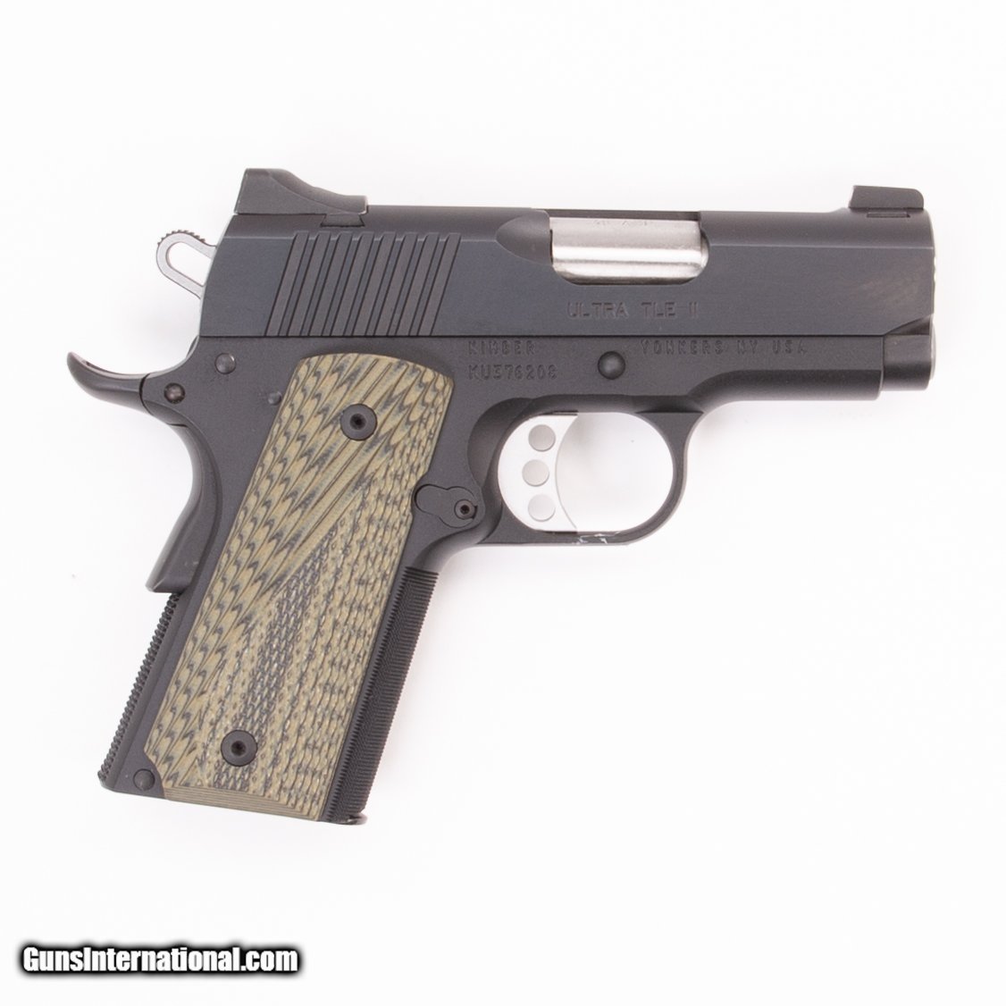Description: Guns Listing ID: 467490 This Kimber features one 7-round magazine, the original case, owner‚‚s manual, a thumb safety and night sights. Get the best bang for your buck when you get a Certified Used Firearm . When you see the Certified Used stamp on any of our firearms, you can be confident that you’re getting exactly what you want – a gun only in very good to excellent condition and held to the highest quality standard. All Certified Used Guns come with a ‘no questions asked’ return policy . PLUS, ALL CERTIFIED USED GUNS SHIP FREE! SOLD Manufacturer: KIMBER Model: ULTRA TLE II Caliber Info: .45 ACP Condition: Used - Certified Barrels: 3.25 BARREL Action: SEMI AUTOMATIC Finish: BLACK Weight: 1.6 |