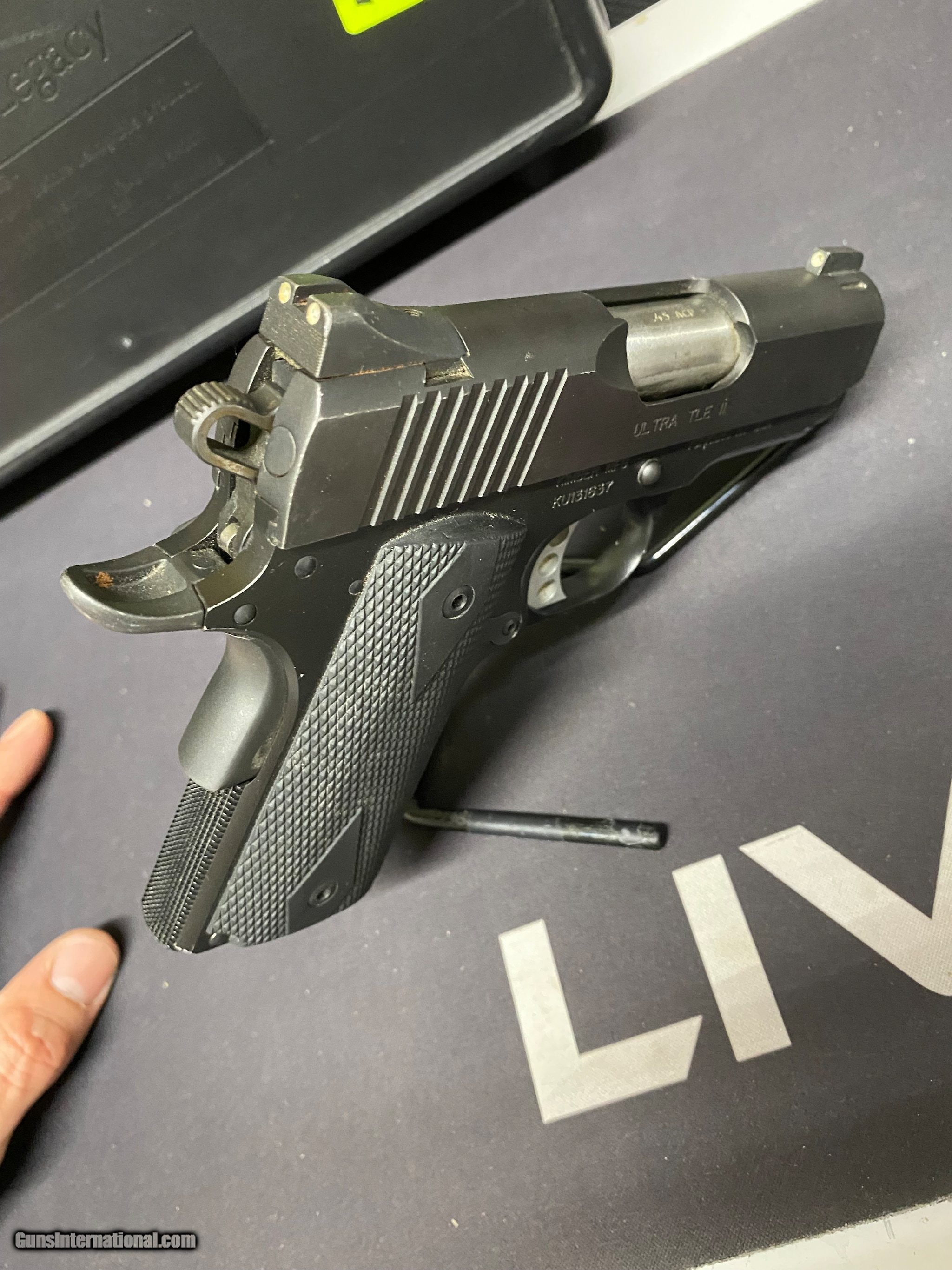 Description: Guns Listing ID: 729297 *** PRE-OWNED / IN VERY GOOD CONDITION *** . \" KIMBER ULTRA TLE ll, SEMI-AUTO PISTOL \" \" COMES WITH ORIGINAL HARD CASE AND ONE 07-ROUND MAGAZINE / SEE ALL PHOTOS \" . \" ALL FIREARMS ARE INSPECTED BY A CERTIFIED GUNS-SMITH & NRA INSTRUCTOR \" (ITEM CODE: G-I-1844) (BLS) SOLD Manufacturer: KIMBER Model: ULTRA TLE II Caliber Info: .45 ACP Condition: Used - Non-Certified Barrels: 3 BARREL Finish: BLACK ANODIZED |