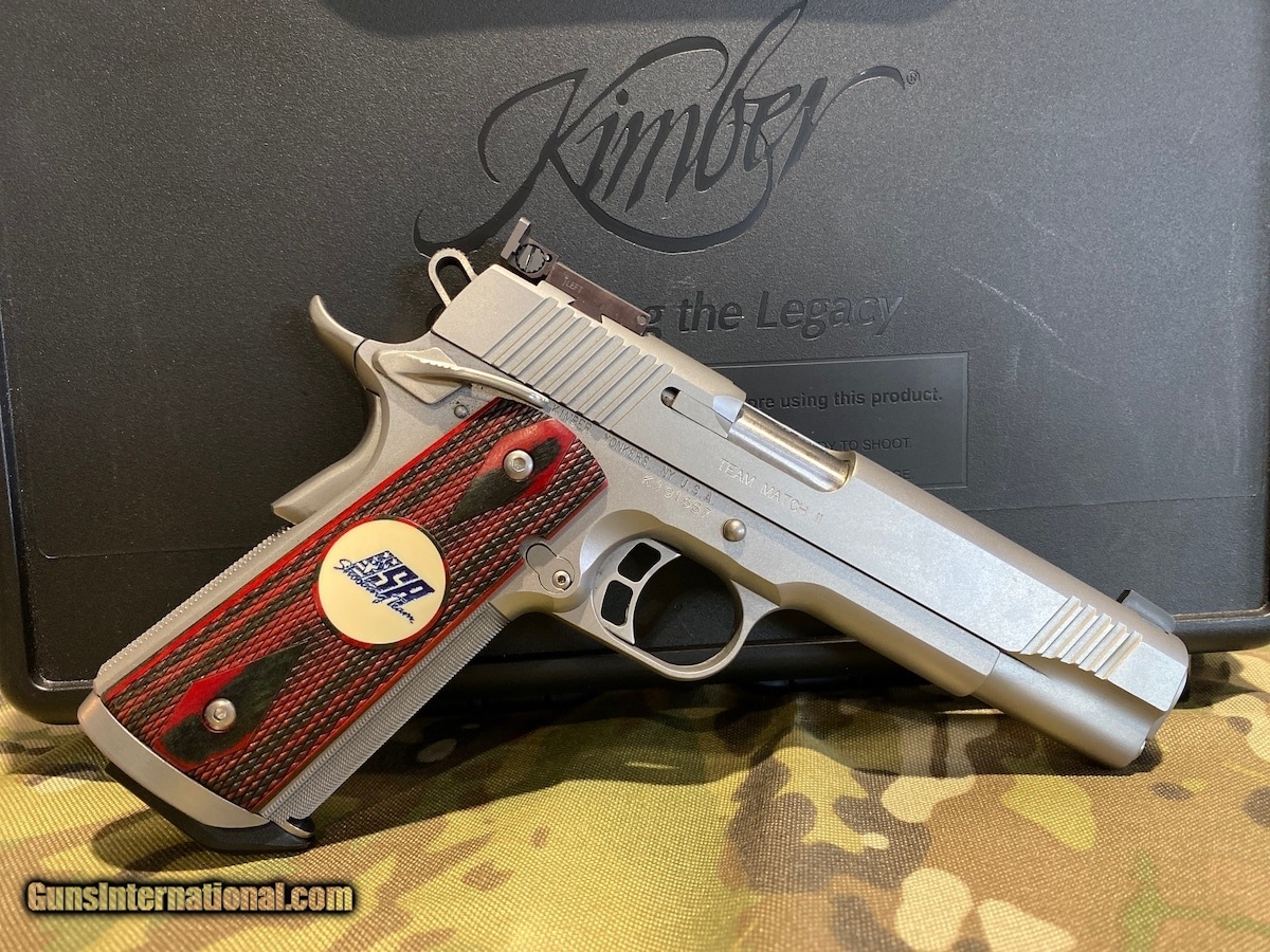 Description: Guns Listing ID: 779056 This Kimber Team Match II is in \"Excellent\" condition and looks great! SOLD Manufacturer: KIMBER Model: US TEAM MATCH II Caliber Info: .45 ACP Condition: Used - Non-Certified Barrels: 5 BARREL Finish: STAINLESS |