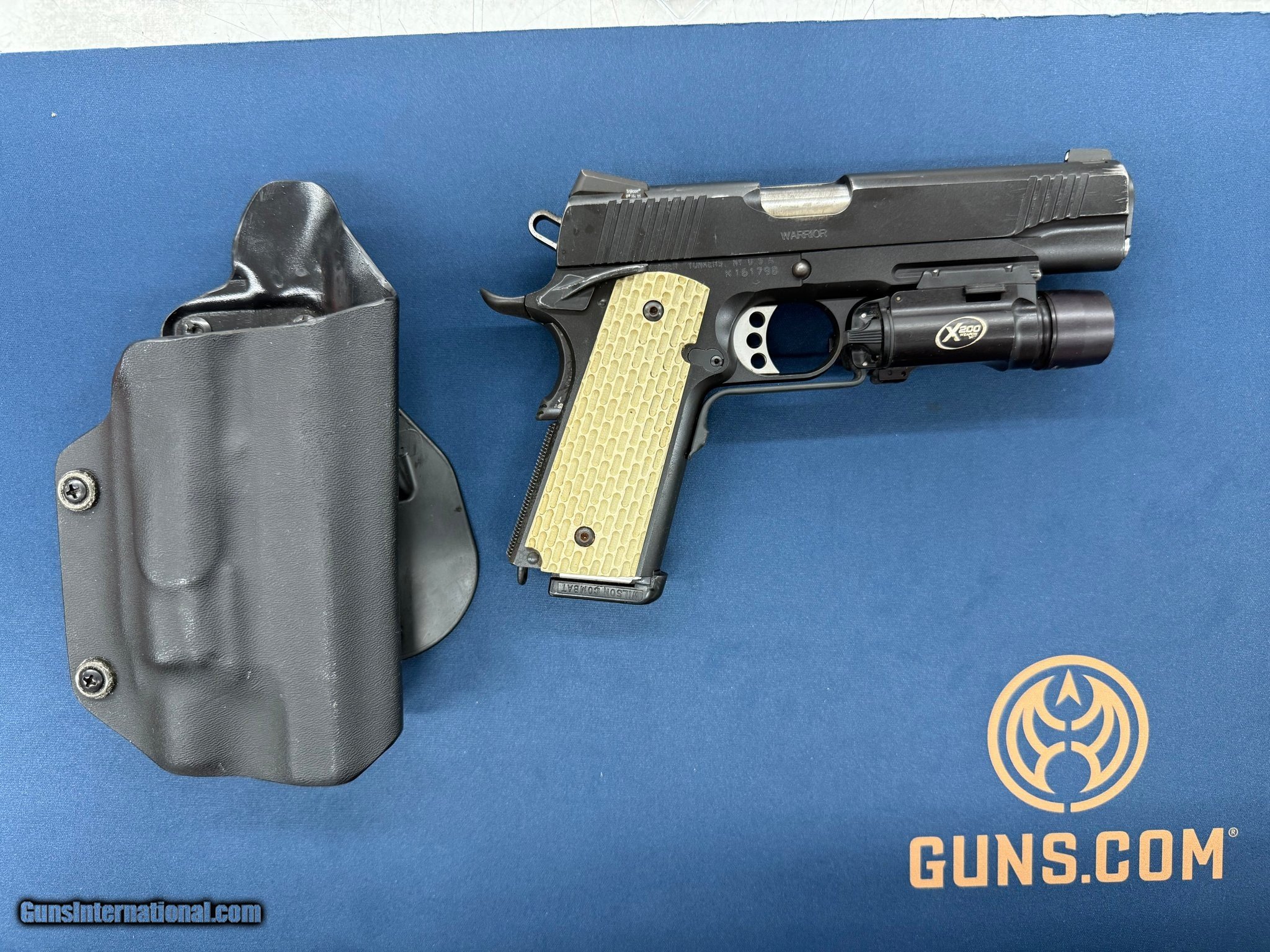 Description: Guns Listing ID: 523286 Kimber Warrior semiautomatic 45 ACP pistol in good condition. Has some holster wear on the slide. Comes with 2-7 round mags, Surefire X200 light and holster that fits the gun with the light. SOLD Manufacturer: KIMBER Model: WARRIOR II Caliber Info: .45 ACP Condition: Used - Non-Certified Barrels: 5 BARREL Action: SEMI AUTOMATIC Finish: BLACK Weight: 2.4 LBS. |