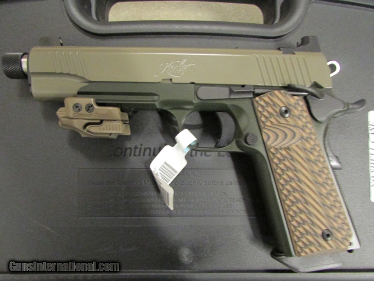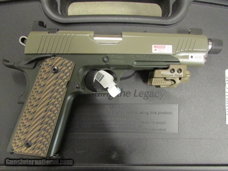 Description: Brand New in the Box, Ready to Ship. Buy It Now!! Accuracy and dependability right out of the box. Made in America. The choice of America’s best shooters. Kimber is the most popular 1911 pistol in the world and Kimber quality is unequaled by any other manufacturer. The Custom family is where it all began. The Kimber Custom sets the performance standard for production 1911 pistols. The Warrior SOC (Special Operations Capable) .45 ACP is a full-size 1911 designed for absolute dependability under harsh conditions. Caliber: .45 ACP Height (inches) 90° to barrel: 5.25 Weight (ounces) with empty magazine: 39 Length (inches): 8.7 Magazine capacity: 7 Safety: Ambidextrous thumb safety Service melt: Yes Recoil spring (pounds): 16.0 Standard military length guide rod: Yes Frame Material: Steel Frame Finish: Dark Green, KimPro II frame finish Frame Width (inches): 1.28 1913 Picatinny Rail: Yes Slide Material: Steel Slide Finish: Dark Earth, KimPro II slide finish Front serrations: Yes Barrel Length (inches): 5 Barrel Material: Stainless Steel, match grade; Stainless steel match grade bushing Twist rate (left hand): 16 Sights: Tactical Wedge Tritium night sights, fixed Radius (inches): 6.8 Laser Sight: Desert Tan Crimson Trace Rail Master Grips: Kimber G-10 tactical grips Trigger: Solid Aluminum, match grade Factory setting (approximate pounds): 4.0 - 5.0 Shipping to Lower 48 Only, Shipping $30.00, KNOW YOUR LOCAL AND STATE LAWS!! The prices on this item reflect a 2.5% cash, money order, or certified check discount. This discount is not valid for credit card purchases. Add 2.5% to the total cost for credit card purchases. SOLD |
