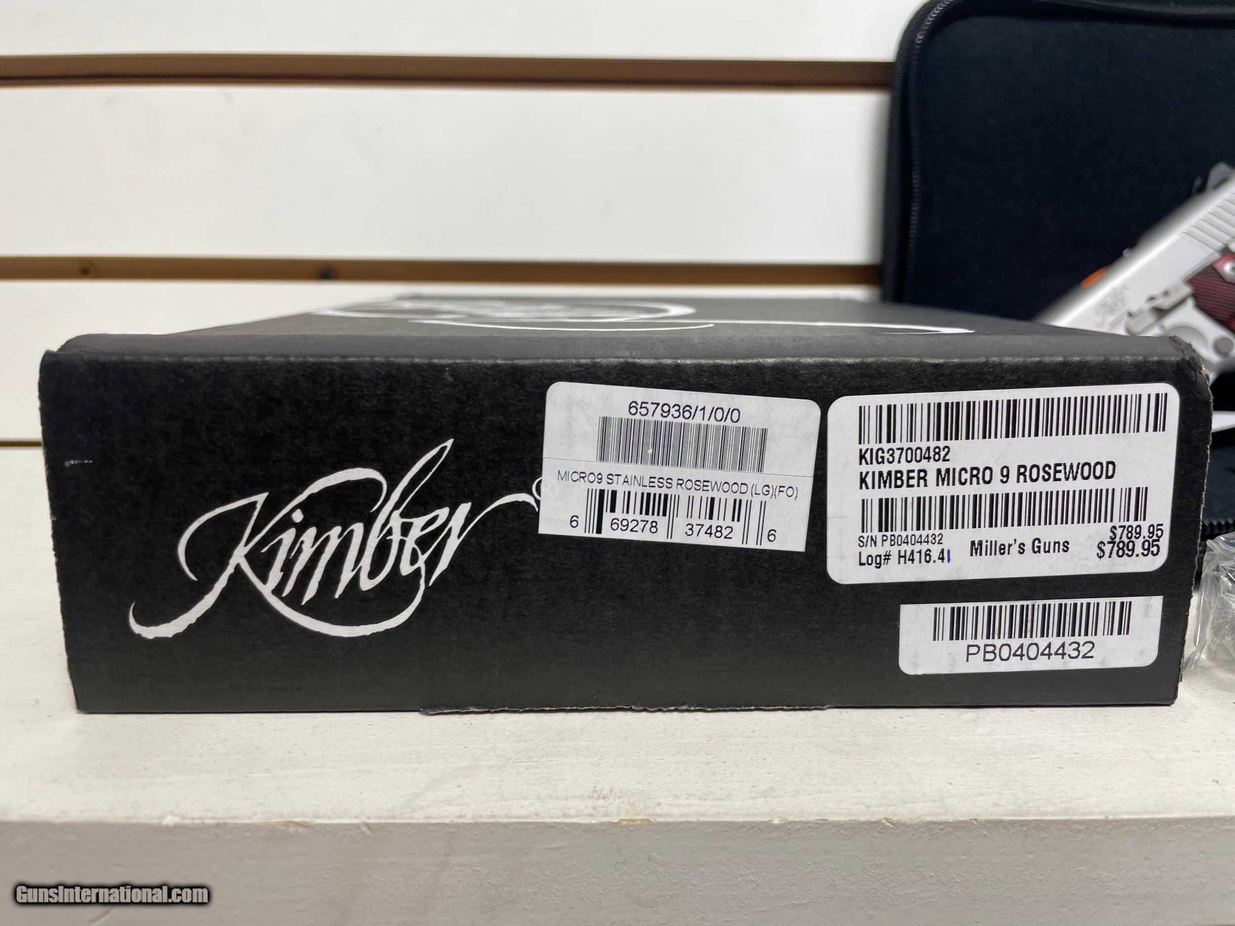 Description: New Kimber Micro 9 stainless 9mm 3" barrel built in crimson trace soft case spare sights rosewood grips 1 6 round magazine manual lock Buyer pays shipping Millers Gun Center Located in New Castle, Delaware "Home of TAX-Free shopping" No Credit Card Fees SOLD Serial Number: 2 instock |