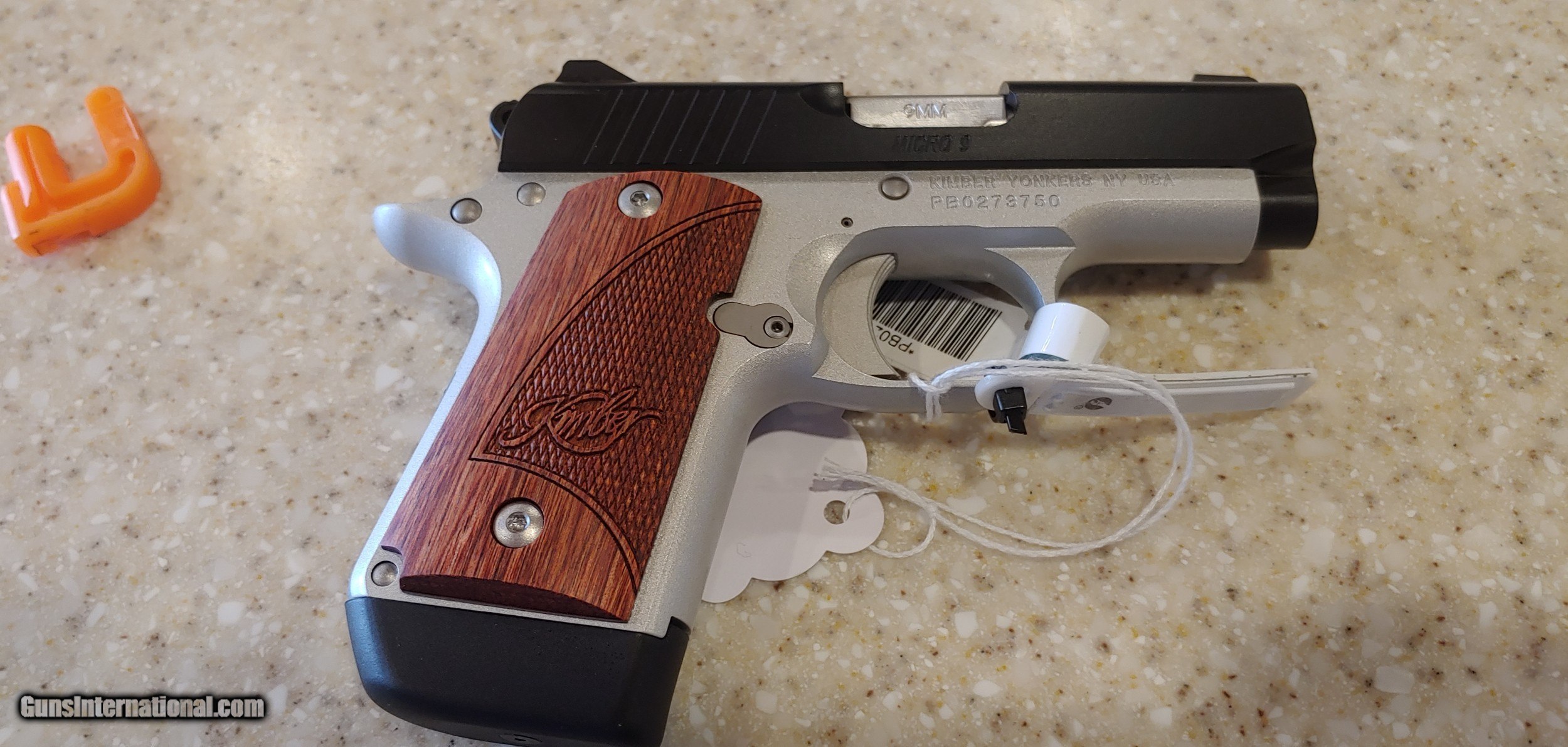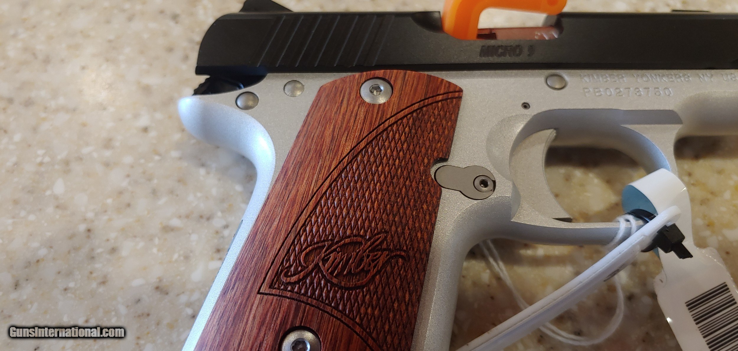 New Kimber Micro 9 Two Tone Black and Silver Rosewood Grip