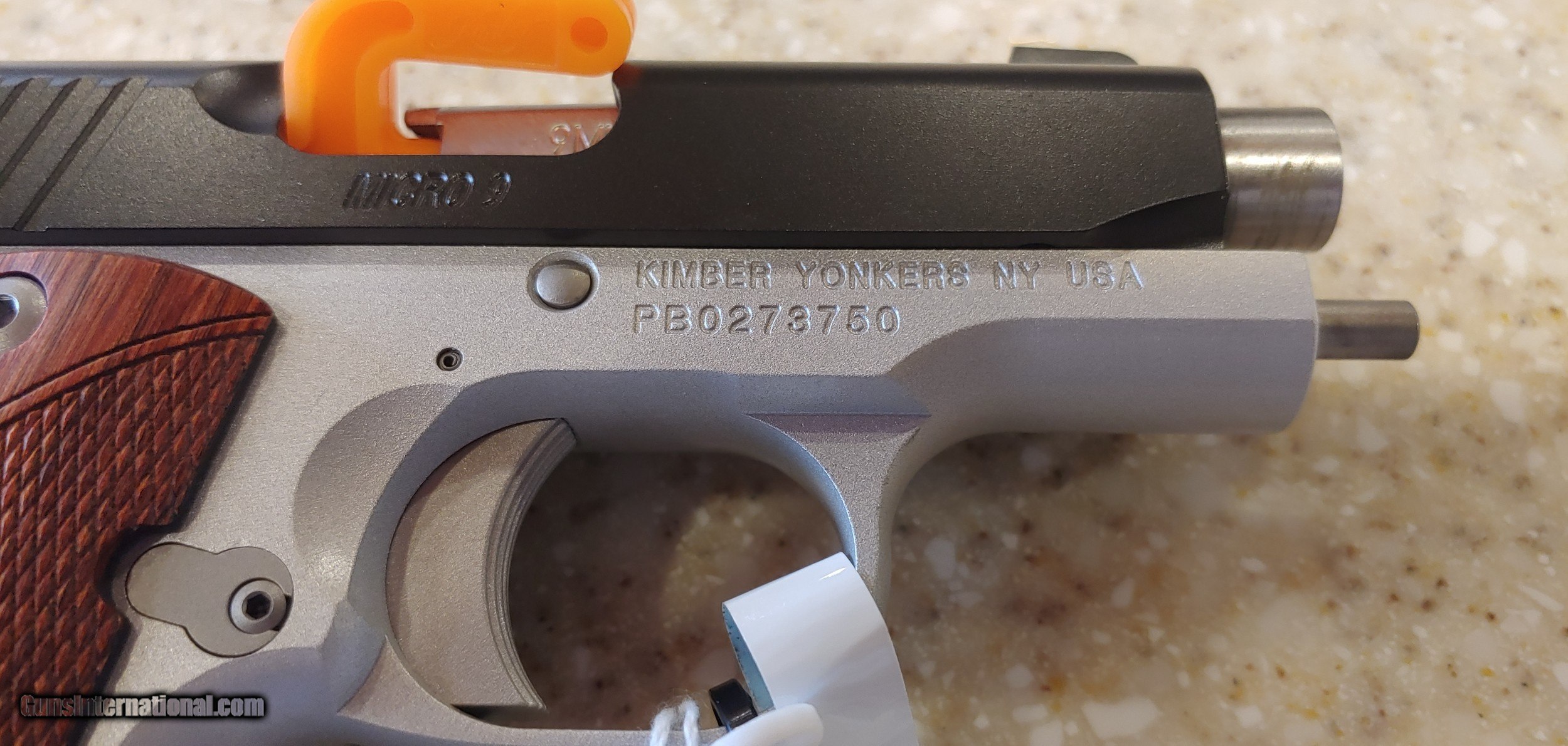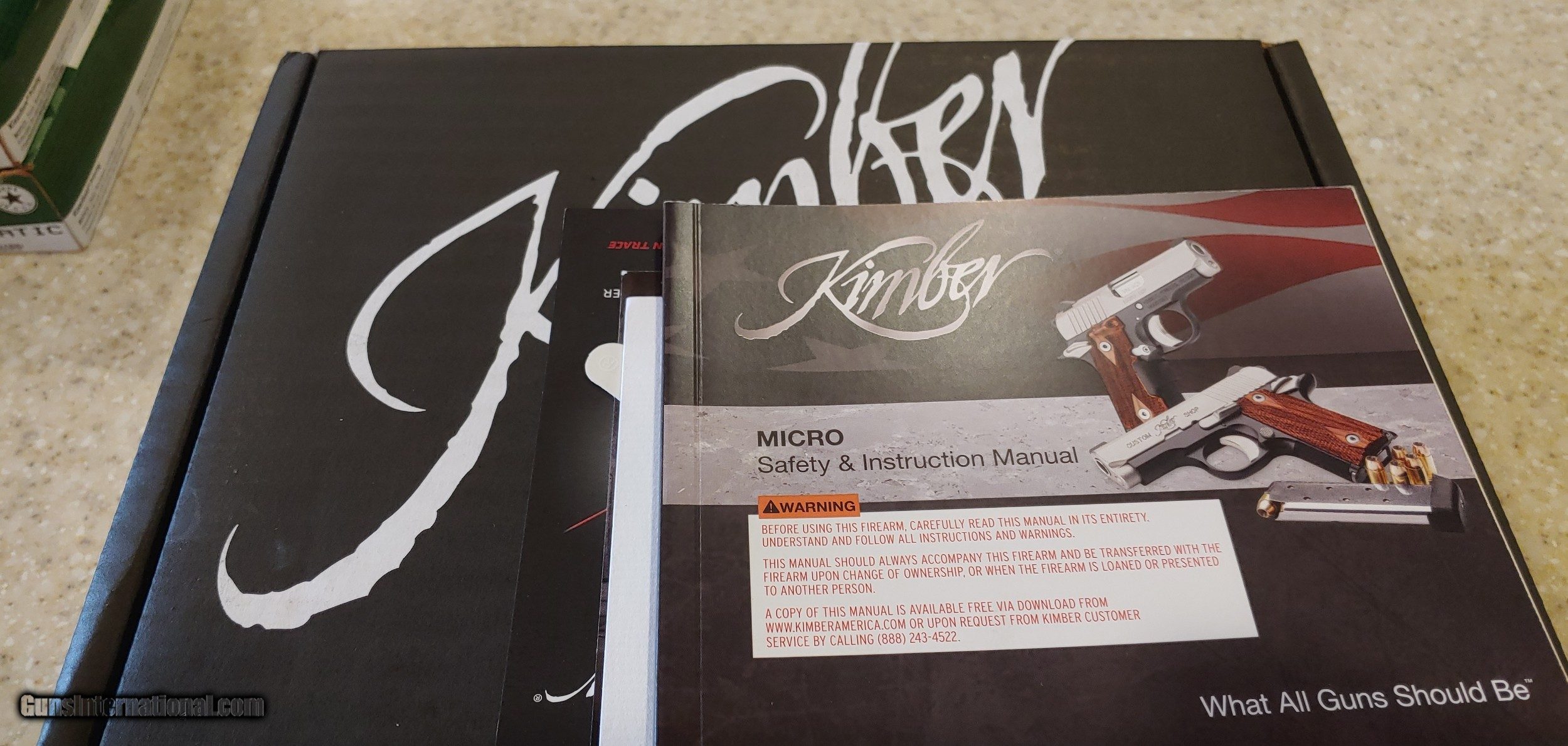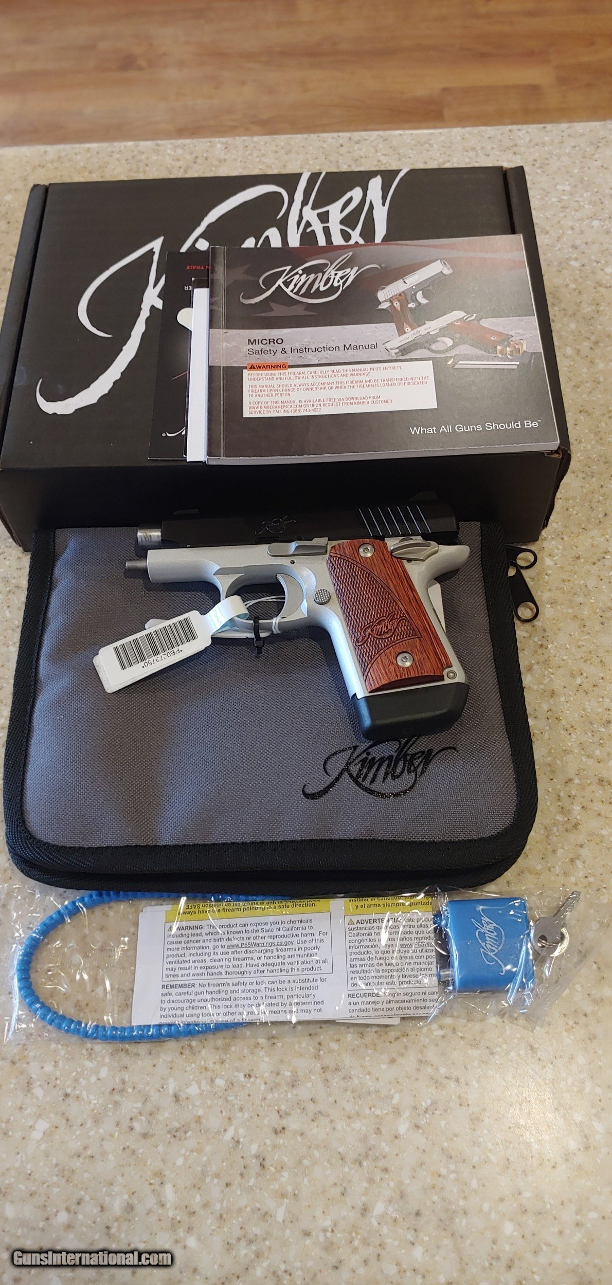 Description: New Kimber Micro 9 Two Tone Black and Silver Rosewood Grip Soft storage case original box manuals buyer pays shipping priced to move SOLD Serial Number: PB0273750 |